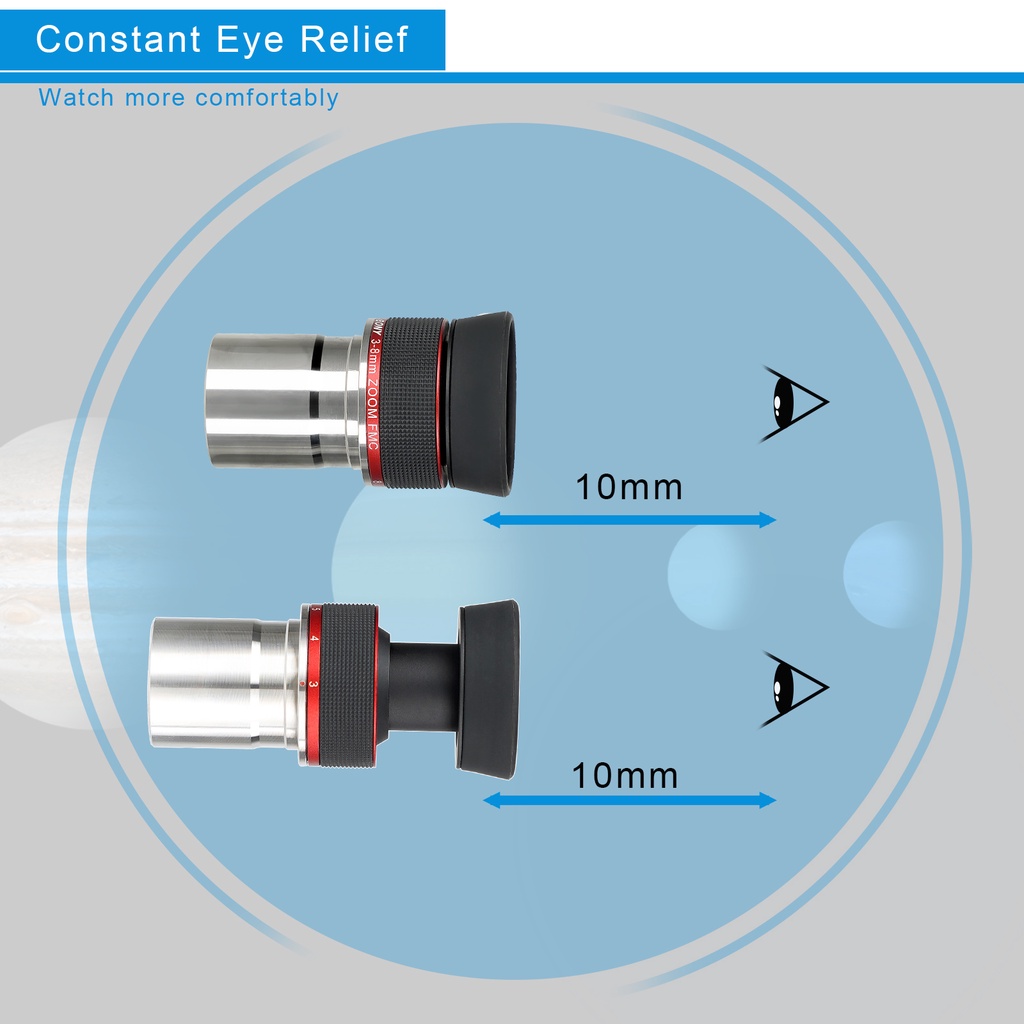 SVBONY SV215 Ocular zoom planetário 3–8 mm, 1,25", parfocal, AFOV constante 56°, para Lua