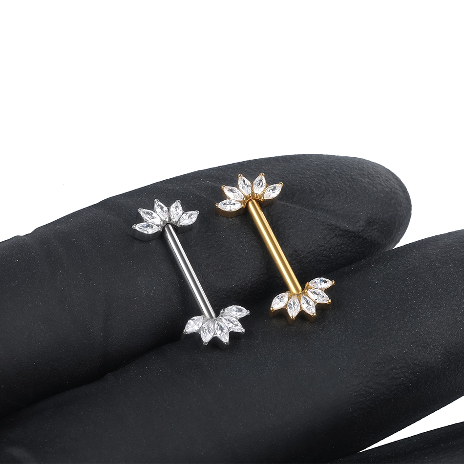 SWANJO Titânio Roscado Interno Mamilo Barbell Cubic Zirconia PVD Jóias De Corpo Com Piercing Em Banho De Ouro
