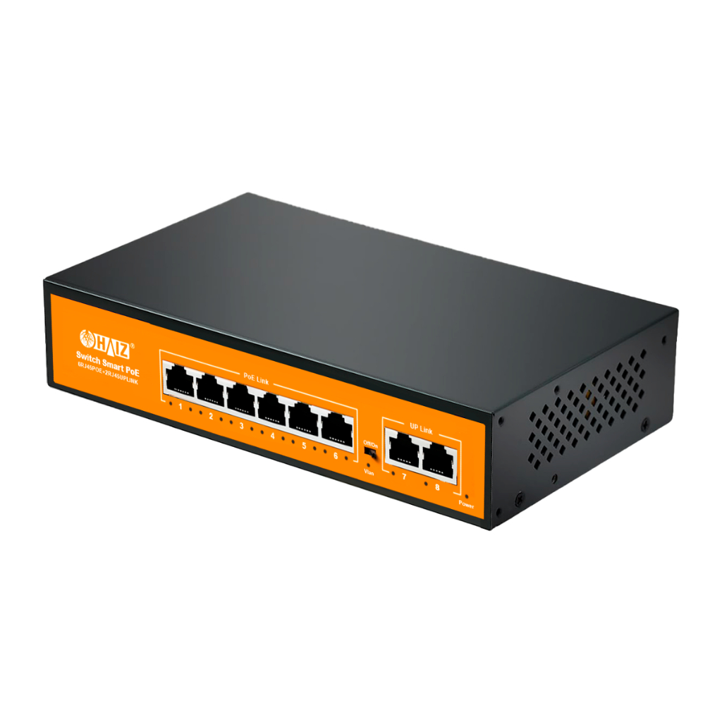 Switch de Rede Haiz 6 Portas PoE + 2 UpLink Gigabit 10/100/1000Mbps HZ-1008GBPOE