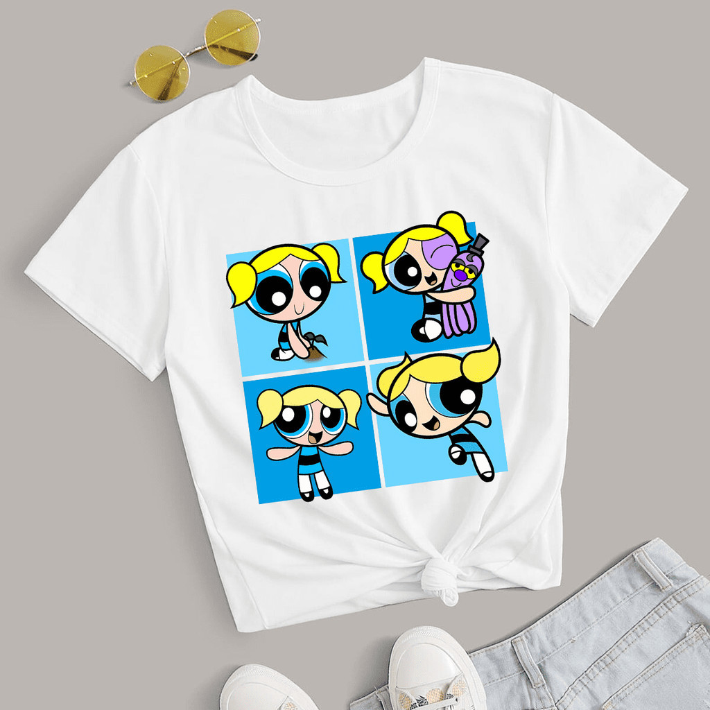 T-shirt As Meninas Superpoderosas Blusinha Básica Estampada Branca