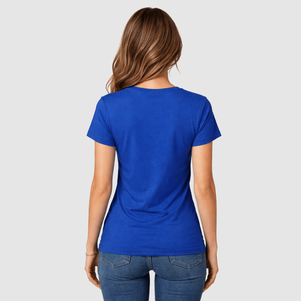 T-Shirt Baby Look Feminina Azul Royal Lisa Básica Premium 100% Algodão 30.1 Penteado