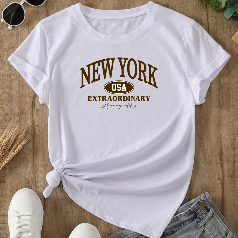 T-shirt Blusa Feminina Camiseta 100% Algodão Estampa New York ✅Sobre o produto: ✔ Tecido premium 100% algodão ✔ Estampas em alta qualidade ✔ Costura reforçada, não desbota e não encolhe ✅Diferencial do nosso produto: ✔ Tecido macio e confortável ✔ Não da bolinhas após lavagem e não fica transparente ✔ Ideal para usar no dia a dia, agregando conforto e leveza para um look muito despojado. ⚠️ Na compra do kit mandar a cor de sua escolha no chat após a compra. Trabalhamos com envios imediatos pela transportadora. 🚚 Envio Super Rápido 🥰 Para dúvidas, estamos à disposição no chat