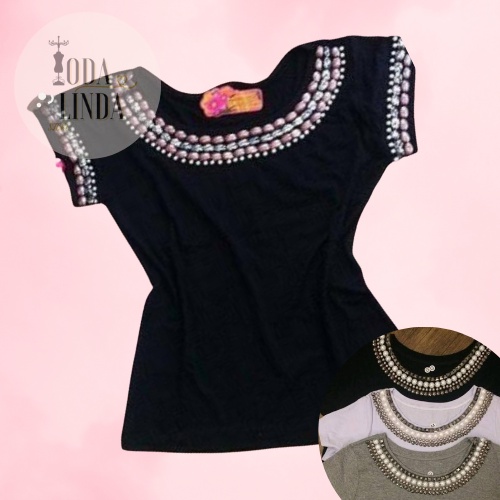 | T-shirt Blusinha Camiseta Feminina c/ Pedraria Pérolas Moda Verão B... este produto | R$ 34,89 | — | 4.7/5 | 7 |