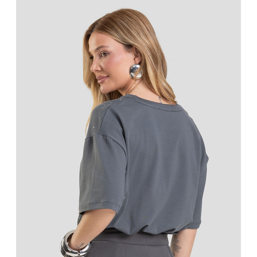 T- Shirt Box Feminina com Strass Dianna Cinza