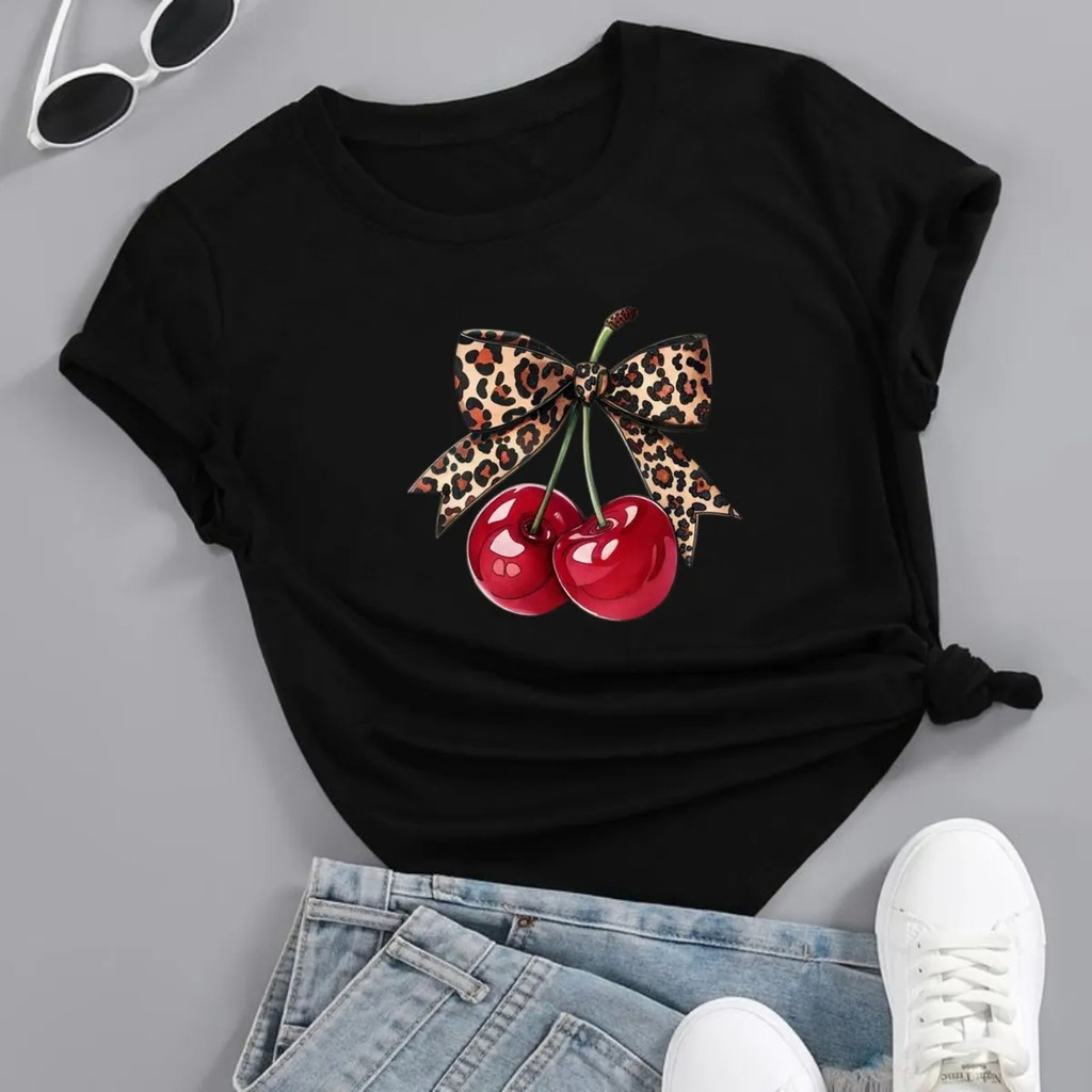 T-shirt Camiseta Estampa Cereja Fruta Laço Onça Oncinha Estilosa Tumbler Aesthetic Estilosa Animal Print