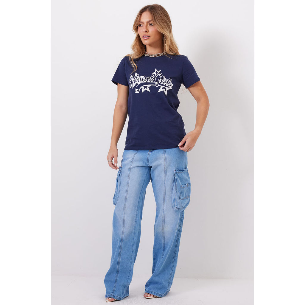 T-Shirt Feminina Estampada Planet Girls Azul Escuro