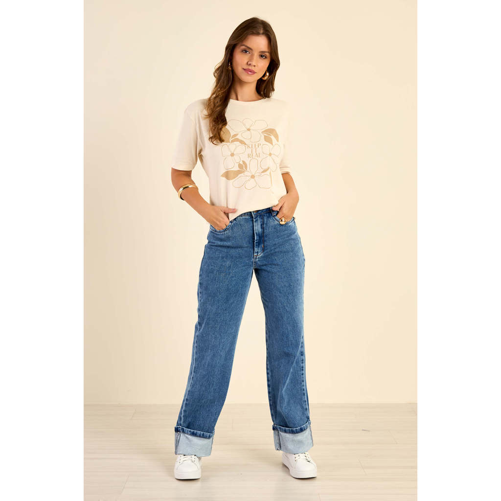 T-Shirt Feminina Flores Marialícia Bege