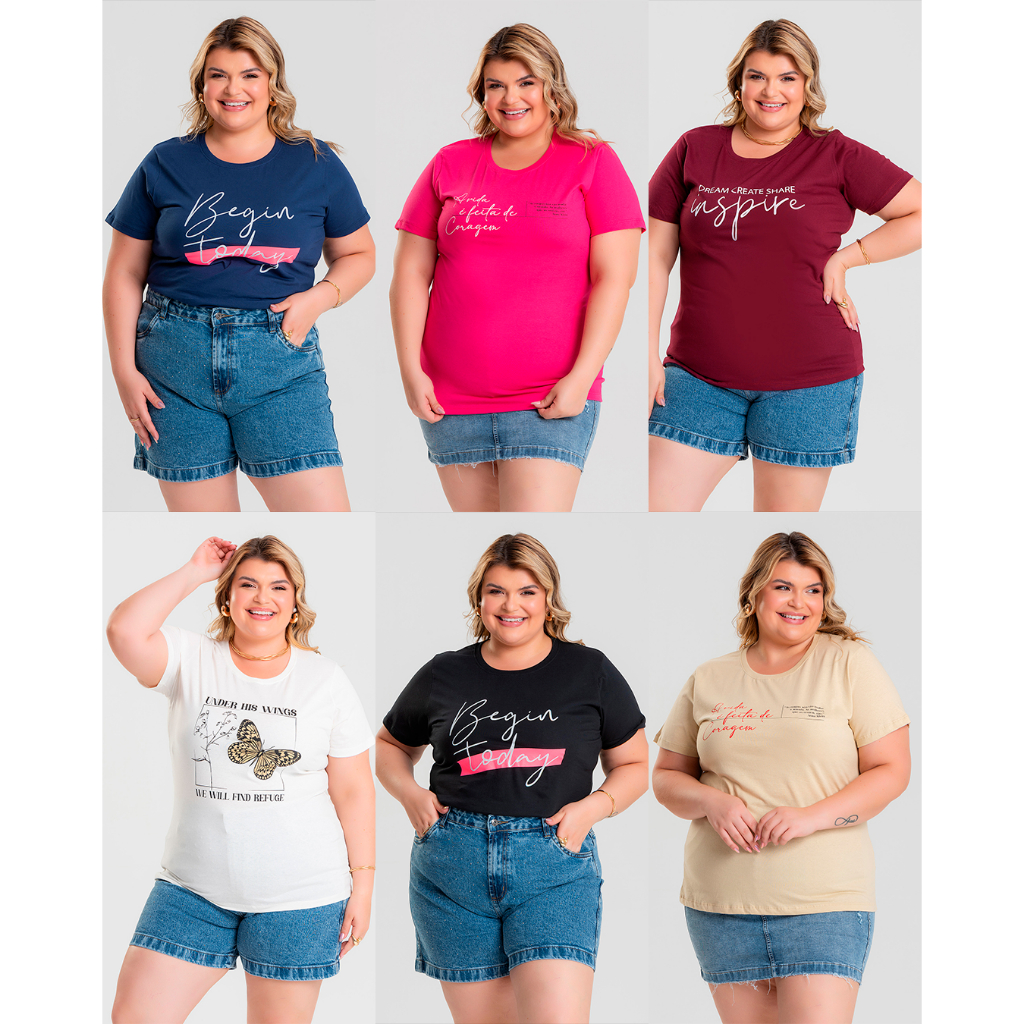 | T-shirt Feminina Plus Size G6 a G10 100% Algodão Gola Redonda Camis... este produto | R$ 45,90 | 32% | 4.9/5 | 53 |