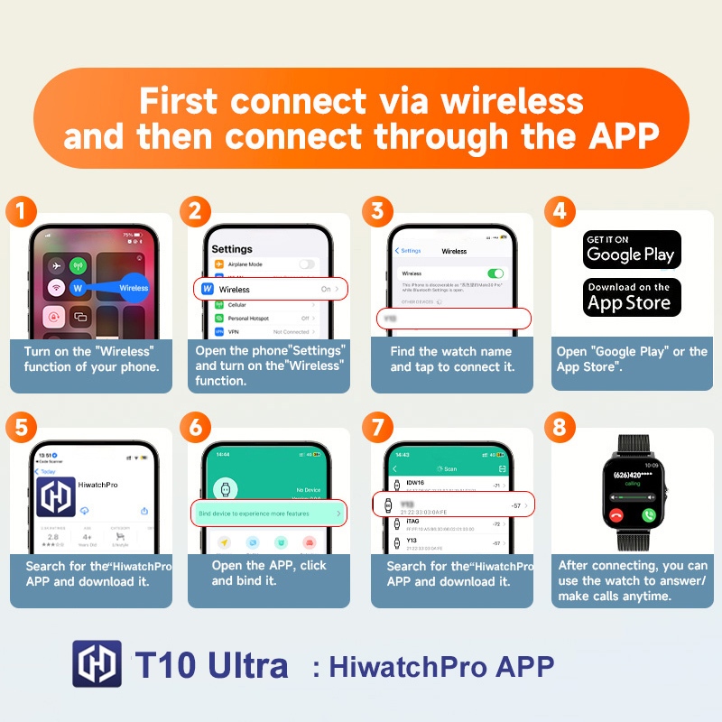 Descrição do Produto Nome do projeto: T10 ultra App:hiwatch pro Características: 1、equipamento de uso Chip de baixa potência Ultra baixo 2、 3、taxa de coração、passo 4、bt CALL、BT Music 5、app Mostradores PERSONALIZADOS Função básica Etapa NPC、distância、Calorie、Taxa de coração/ Pressão arterial/Oxigênio 、Chamada BT、Música do relógio、Temperatura、Monitoramento、Monitoramento do sono、Lembrete SMS、Alertas SMS、Lembrete de Mensagem APP Solcial、Lembrete de despertador、Um lembrete sedentário、Esporte、Vire o pulso e brilhe A tela、Olhando Comutação multidial para telefones, fotografia remota, não perturbe, comutação Multi-dial para pulseiras, procurando telefones, fotografia remota, rejeição de chamadas, não perturbe, comutação Multi-dial Lembrete de Mensagem Social APP: WeChat,QQ,2009,Twitter,Linha,Whatsapp,Instagram Sistema APP I0S 9.0 e acima, Android 5.0 e acima Tamanho do produto: 49*43,5*15mm Versão Bluetooth da versão: 5.0 Tela:2.09” Modo de carregamento magnético: carregamento sem fio magnético Taxa cardíaca e temperatura em um Capacidade da bateria da bateria: 260mah Idioma APP: Inglês Holandês Russo Francês Português Alemão Espanha Turquia Polônia Malay Czechoslovakia Árabe Tailandês Itália Conteúdo do pacote do pacote do pacote Relógio inteligente*1 Alça de Silicone*1 Carregador magnético*1 Manual do usuário*1