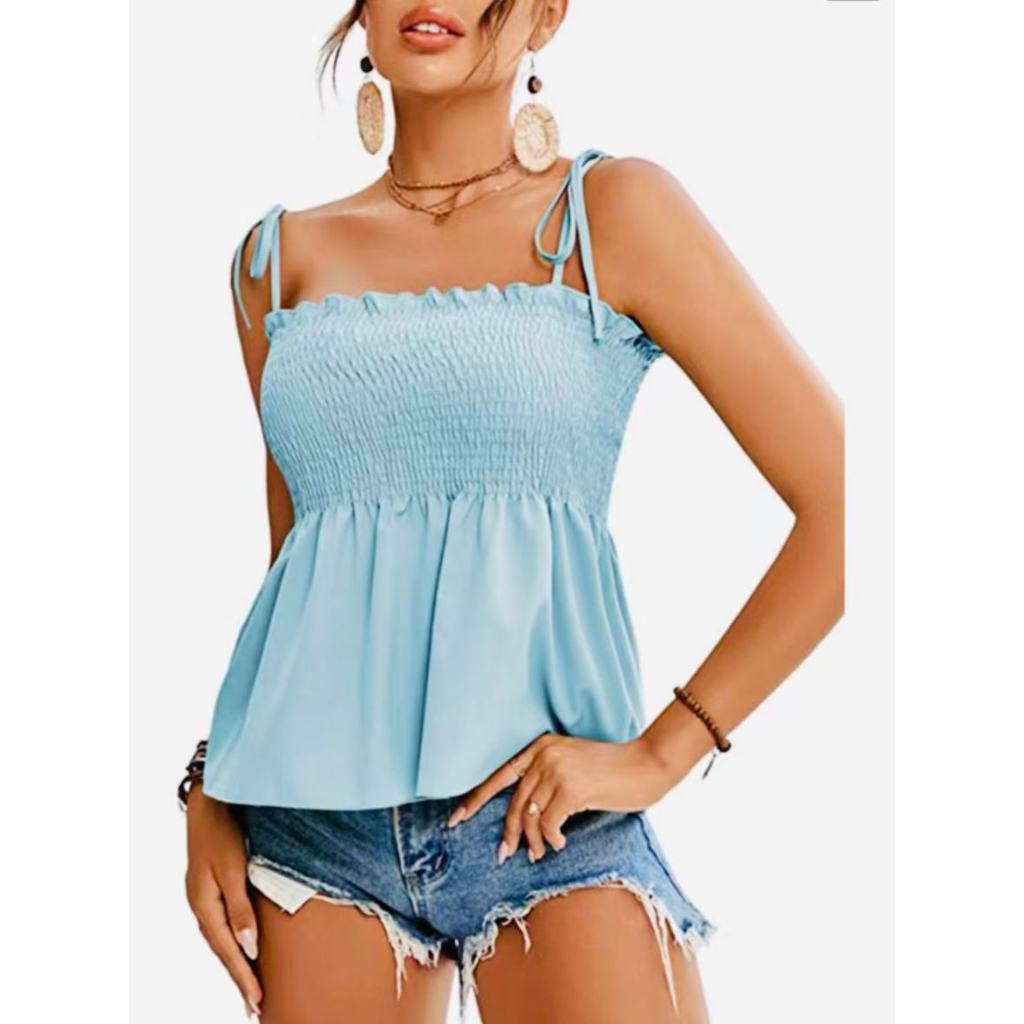 T109Top curto com alças e babados