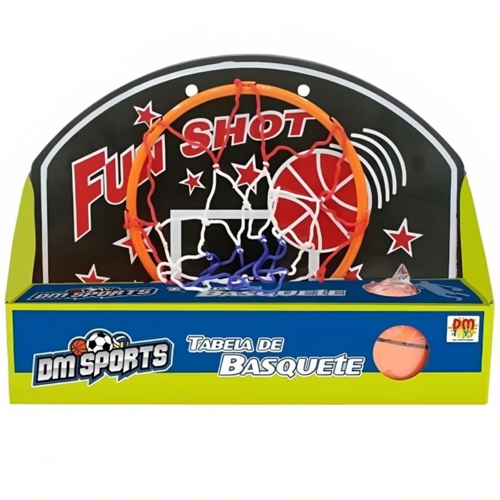 DESCRIÇÃO DO PRODUTO Transforme o quarto, a varanda ou o quintal em uma verdadeira quadra de basquete! Nossa Mini Tabela de Basquete é o presente ideal para tirar a criançada do celular e incentivar a prática de esportes de forma leve e divertida. CARACTERÍSTICAS TÉCNICAS Conteúdo da Embalagem: 01 tabela; 01 bola; 01 peça para pendurar na porta. Dimensões Aproximadas do Produto: 34 x 24 x 7 cm (Altura x Largura x Comprimento/Profundidade) Dimensões Aproximadas da Embalagem: 9 x 26 x 36 cm (Altura x Largura x Comprimento/Profundidade) Material/Composição: Plásticos PVC, PP e HIPS Idade Mínima Recomendada: A partir de 8 anos Participantes: A partir de 1 pessoa Alimentação: Não se aplica Marca: DM Toys Referência: 5938 Outras informações: As cores podem variar entre as imagens mostradas acima e o produto. Imagens meramente ilustrativas. Aviso: As informações e imagens divulgadas são de total responsabilidade do fabricante/fornecedor. APROVADO PELO INMETRO
