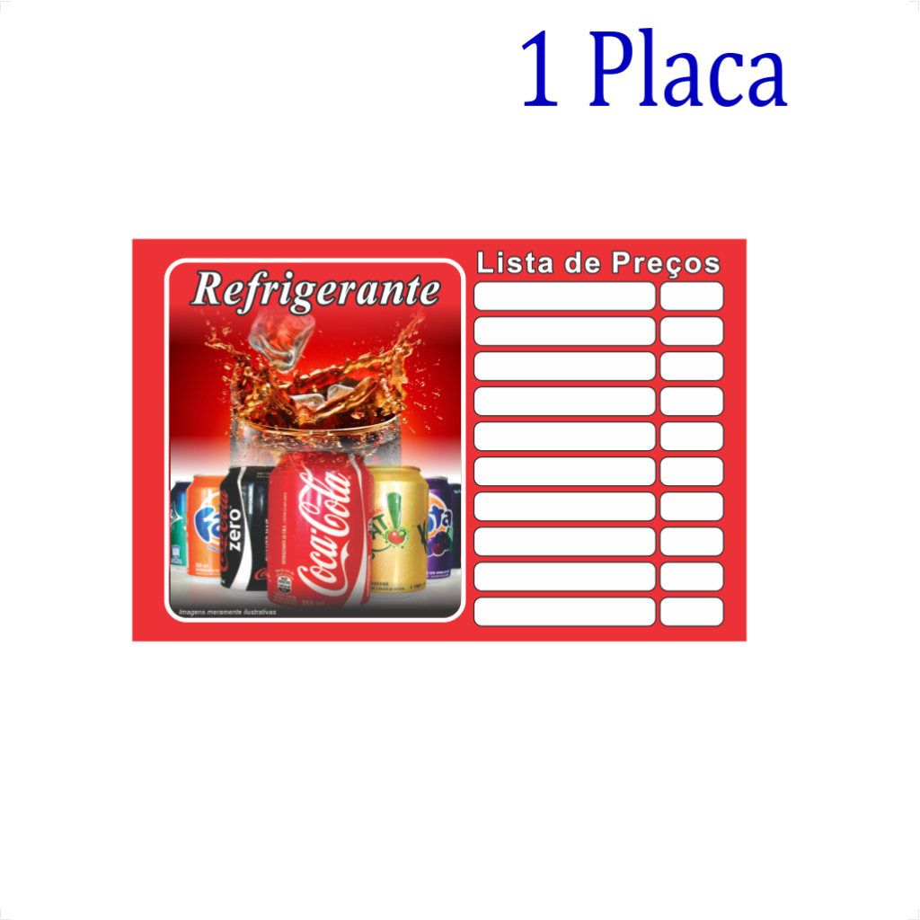 Tabela de Preços em pvc, Placa Refrigerante, Lista Preços Lanchonete, Bebidas, Reutilizável, Ref. 228