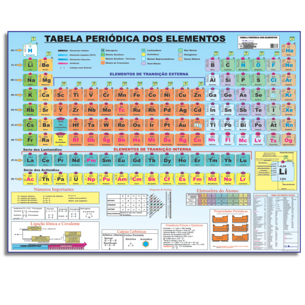 Produto novo, a pronta entrega Emitimos nota fiscal - Elementos de transação Externa - Série dos Lantanídios - Série dos Actinídeos - Leitura dos Átomos - Números Importantes - Ligação Iônica e Covalente - Cadeias Carbônicas - Diagrama de Pauling - Eletrosfera do Átomo - Grandezas físicas e químicas - Propriedades Periódicas - Tabela de Cátions: Monovalentes, Bivalentes, Trivalentes, Tetravalentes, Pentavalentes. - Tabela de ânions e ácidos Você esta prestes a levar conteúdos que vão lhe ajudar a entender o Anatomia humana e ou corpo humano de forma ilustrativa Mostre importância e elegância em seu escritório, casa ou em sua empresa com estes maravilhosos mapas bem desenhados, detalhados e coloridos. Estude de forma dinâmica com nossos mapas, para escola, faculdade e cursos técnicos Mapas de primeira qualidade, impresso em papel com superfície plastificada, de fácil manuseio, servindo sua empresa e ou seus estudos de maneira pratica a ajudar na identificação de problemas e soluções. Mapa totalmente legível, a foto do anuncio é básica só de demonstração Compatível com caneta de quadro branco Material: Papel 120 gramas, plastificado levemente na frontal Medidas aproximadas: 120cm x 90cm Mapa enviado enrolado Agora acompanha corda para pendurar Acompanha velcro para deixar o mapa preso e enrolado Acompanha as madeirinhas sarrafo emmadeiranas extremidades Na compra de vários mapas enviamos até 3 mapas no mesmo tubo postal e assim sucessivamente vários tubos podem ser enviados juntos.
