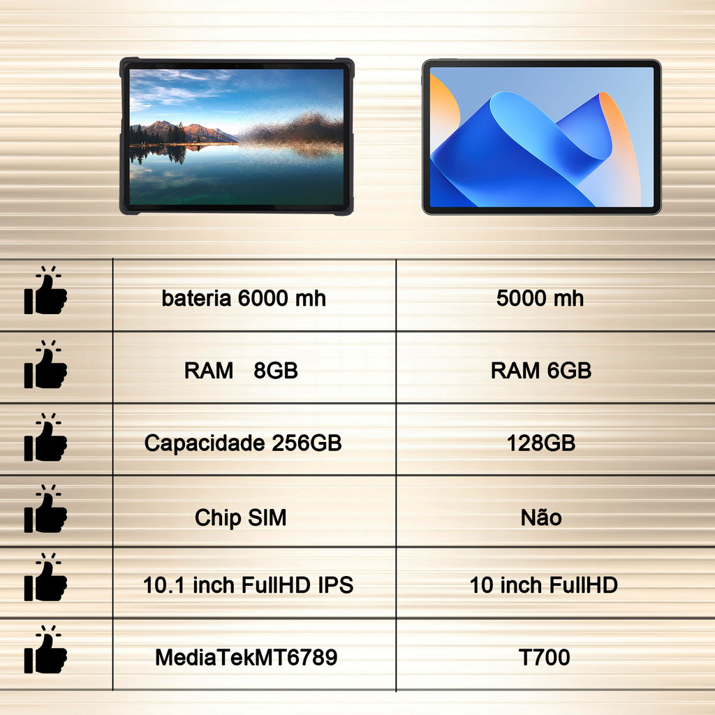 📱 Tablet C10: Potência, Conectividade e Versatilidade em Suas Mãos 🚀 Descubra o Tablet C10 Android, o dispositivo ideal para quem busca desempenho, mobilidade e praticidade em um único aparelho. Com design moderno, tecnologia de ponta e recursos completos, ele acompanha sua rotina em casa 🏠, no trabalho 💼 ou nos estudos 📚, proporcionando uma experiência única para todas as tarefas do dia a dia. ⚡ Desempenho e Armazenamento que Superam Expectativas O C10 conta com 8GB de RAM e 250GB de armazenamento interno 📂, garantindo espaço suficiente para aplicativos, jogos, fotos, vídeos e arquivos importantes. A memória rápida proporciona execução fluida de múltiplos aplicativos ao mesmo tempo, sem travamentos ou lentidão. Além disso, o armazenamento expansível permite adicionar ainda mais espaço, acompanhando suas necessidades conforme crescem. 🌐 Conectividade Completa e Estável Mantenha-se sempre conectado! O Dual SIM 4G permite utilizar dois chips ao mesmo tempo, ideal para separar vida pessoal e profissional 🌍. Com WiFi rápido e estável, você assiste videoaulas, participa de reuniões online e navega na internet sem interrupções, onde quer que esteja. O Bluetooth moderno garante conexão eficiente com fones, teclados ou outros acessórios sem fio. 🖥️ Tela de 10.1" HD: Imersão Total A tela de 10.1 polegadas HD oferece cores vibrantes, contraste nítido e excelente visibilidade, mesmo sob luz intensa 🌞. Perfeita para: 🎬 Filmes e séries em alta definição 🎓 Videoaulas e reuniões online 📖 Leitura de livros digitais e PDFs 💻 Navegação em redes sociais e aplicativos Com a rotação inteligente da tela, você pode usar o tablet tanto no modo retrato quanto paisagem, adaptando-se a qualquer situação. 📸 Câmeras de Alta Qualidade para Cada Momento O Tablet C10 vem equipado com câmeras potentes para capturar fotos, vídeos ou escanear documentos com nitidez excepcional. A câmera frontal garante videochamadas claras e profissionais, perfeita para aulas, reuniões ou chamadas com familiares. 🛠️ Kit Completo de Acessórios O C10 já acompanha tudo que você precisa para produtividade e proteção: ✔️ Capa de tecido resistente 🛡️ – protege com estilo e durabilidade ✔️ Teclado externo ⌨️ – digitação confortável, prática e rápida ✔️ Portabilidade máxima – leve, compacto e fácil de transportar Com esses acessórios, você transforma o tablet em uma estação de trabalho portátil pronta para qualquer desafio. 🔋 Bateria Duradoura e Portátil Sua bateria potente garante horas de uso contínuo 🔋, acompanhando sua rotina do estudo ao lazer, sem necessidade de recargas frequentes. Ideal para quem precisa de mobilidade e autonomia, seja em casa, no escritório ou fora dele. ✨ O Parceiro Ideal para Estudo, Trabalho e Entretenimento O Tablet C10 é muito mais que tecnologia: é uma ferramenta completa que eleva sua produtividade, aprendizado e diversão. Seja para: 📚 Estudantes: organize estudos, participe de aulas online e faça anotações com a caneta 💼 Profissionais: gerencie planilhas, apresentações e reuniões com fluidez 🎮 Entretenimento: assista vídeos, jogue e navegue com performance e qualidade Tablet C10 – Seu aliado portátil definitivo para produtividade, estudo e entretenimento, sempre ao seu lado!