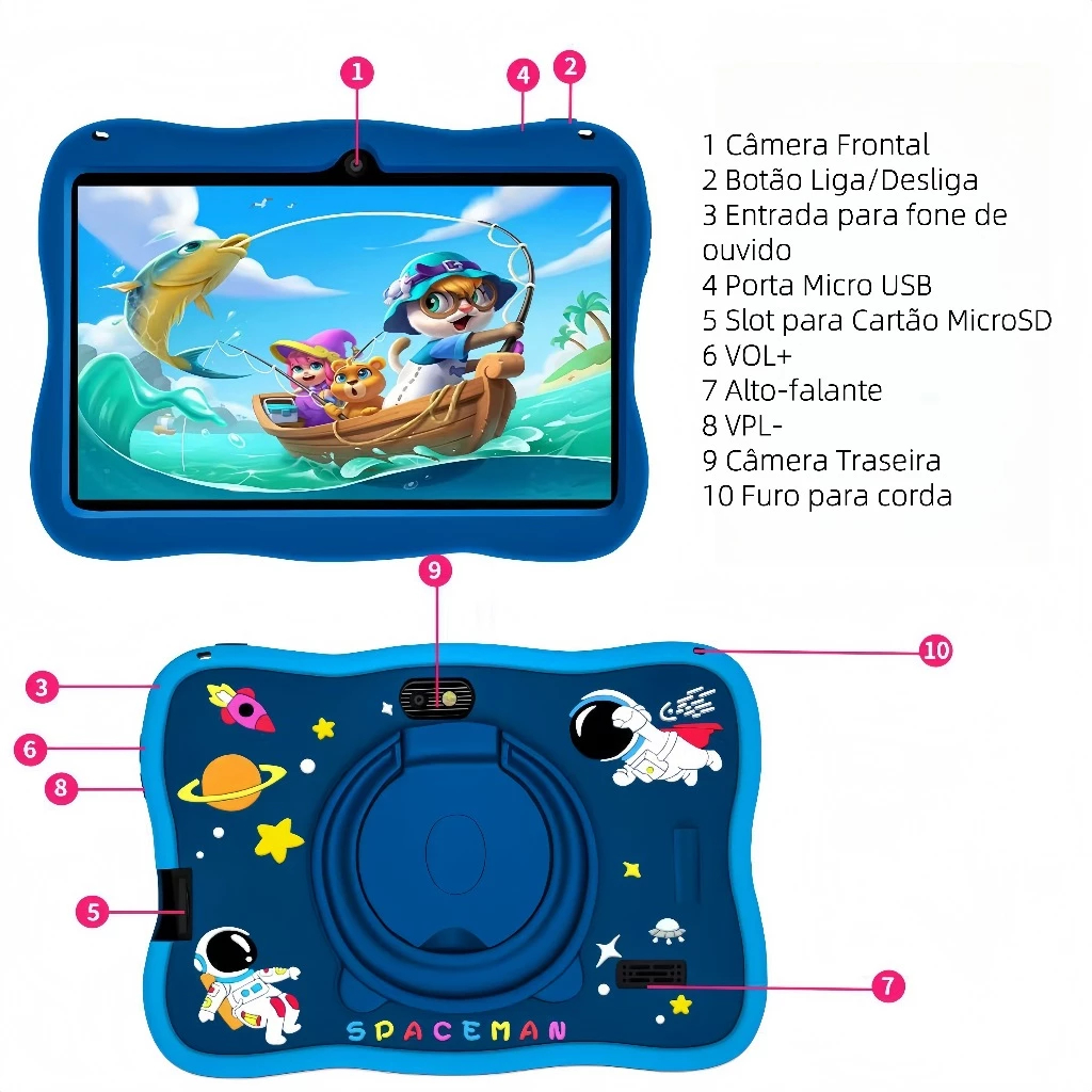 DESCRIÇÃO: É possível baixar jogos e outros aplicativos. Porém, pode acabar que nem todos eles abrirão pela versão do tablet ESPECIFICAÇÃO: Espaço interno: 16GB Memoria RAM: 6GB Câmera: Câmera frontal,Câmera traseira,300.000 pixels Tamanho da Tela: 7 polegadas Duração da bateria: 5 horas Núcleo do processador: Quad Core Conexões: - Bluetooh 5.0 - Wi-fi 2.4Ghz / 5.0Ghz Acompanha: 1 x Carregador 1 xCabo de dados 1 xCaixa 1 xManual de instruções Material:Abs Model Name:Q8