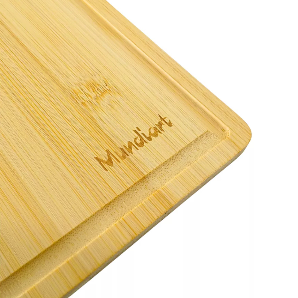 Tabua De Carne Para Churrasco Grande Bambu Alça Inox 29,5cm x 20cm