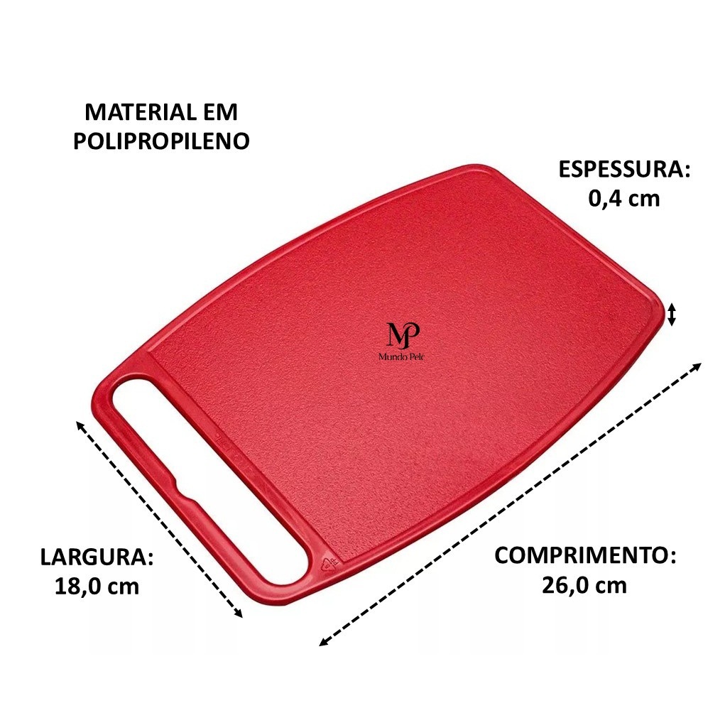 TÁBUA PARA CORTES 26 x 18 CM PARA COZINHA CORTES DE CARNE CHURRASCO LEGUMES TÁBUA MINI-UTILE Apresenta as duas faces texturizadas para conforto e segurança na execução do corte de carnes, frios, verduras e legumes. Bordas elevadas impedem o escoamento de líquidos. Tamanho ideal para utilizar sobre a mesa. CARACTERÍSTICAS Ideal para cortar carnes, frios, verduras, frutas, legumes, peixes, aves e muito mais Fabricadas em Polipropileno com proteção antimicrobiano, evitando a proliferação de bactérias, fungos e odores desagradáveis. Atóxico (Não tóxico) ausência de elementos nocivos à saúde; Não absorve umidade e não desgasta o fio da faca; Aprovadas pela Anvisa; Alta durabilidade, inquebrável; Tábua com pegador (Alça) e bordas arredondadas; Facilidade para limpar, podendo ser colocada na lava louças; Com design Slim compacta, otimiza o espaço e facilita a rotina no dia a dia; Você pode usar como apoio para cortar pão de alho, servir hambúrguer ou petiscos. MEDIDAS / PESO Comprimento: 26 cm Largura: 18 cm Espessura: 4 mm Peso: 150 gramas CONTEÚDO NA EMBALAGEM 1 tábua de corte mini com alça.