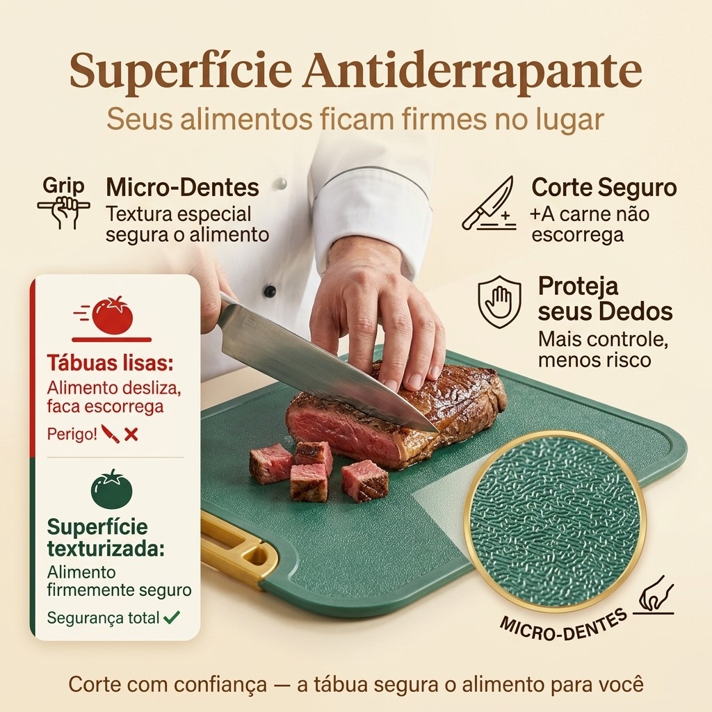 Bem-vindo ao Século Bazar Oficial! 🇧🇷 Higiene e Praticidade para sua Cozinha - Envio Imediato 🥩 Tábua de Corte Premium em PE (Anti-Bactéria e Anti-Mofo) com Alça Stand Chega de tábuas de madeira pesadas que criam fungos e manchas pretas! A nossa Tábua Multifuncional é feita de PE + PP de Grau Alimentício, um material moderno que não absorve água, não cria mofo e é super fácil de limpar. Com a Alça Giratória Inteligente, ela se mantém em pé sozinha, facilitando a secagem e decorando sua bancada! ✨ Por que trocar sua tábua antiga por esta? 🛡️ Higiene Total (Zero Mofo): Material de alta densidade que não retém cheiros (cebola/alho) e não permite a proliferação de bactérias. Pode ir direto para a Lava-Louças! 🔄 Alça Giratória 360° (Função Stand): O grande diferencial! Gire a alça e transforme-a em um suporte. A tábua fica em pé para secar rápido, evitando contato com a água suja da pia. Também serve para pendurar. 💧 Bordas Anti-Transbordamento: Possui canaletas (sulcos) nas bordas que retêm o líquido de carnes, tomates e frutas, impedindo que sujeira escorra para o seu fogão ou mesa. 🛑 Superfície Antiderrapante: Textura especial com "micro-dentes" que segura o alimento no lugar, evitando que a carne escorregue na hora do corte. Segurança total para seus dedos. 🔄 Dupla Face (2 em 1): Use um lado para carnes cruas e o outro para vegetais/frutas, evitando a contaminação cruzada. 📌 Escolha sua Variação: Opção A (Suporte Cromado): Alça com acabamento metalizado brilhante (Mais elegante). Opção B (Suporte Simples): Alça com acabamento padrão na cor da tábua (Mais discreto). 📝 Especificações Técnicas: Material: PE + PP (Plástico de Engenharia Alimentícia) Tamanho: 35cm x 30cm (Tamanho ideal para o dia a dia) Espessura: 1cm (Robusta e Leve) Resistência: Suporta cortes de facas afiadas sem quebrar. 📦 O que vem na embalagem? 1x Tábua de Corte com Alça Giratória ⚠️ DICA DE CHEF: Após lavar, sempre gire a alça e deixe a tábua secando "em pé". Isso garante que ela esteja sempre seca e livre de germes para o próximo uso! 🚚 Cozinhe com mais segurança e higiene! Garanta a sua agora.