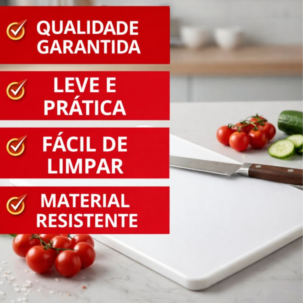 Tábua Flexível de Corte 29x19cm – Praticidade e Higiene na Sua Cozinha! Transforme o preparo dos alimentos em uma experiência mais rápida, segura e organizada com a Tábua Flexível. Feita com material resistente, leve e antiderrapante, ela é perfeita para cortar, fatiar e transferir os alimentos direto para a panela sem sujeira e sem esforço. _____________ Principais Benefícios: Flexível e prática: dobre a tábua e leve os ingredientes direto para o recipiente desejado. Super leve e resistente: ideal para o uso diário sem deformar ou quebrar. Fácil de limpar: não acumula resíduos e pode ser lavada facilmente. Base antiderrapante: estabilidade total na hora do corte. Material higiênico e seguro: não absorve odores nem manchas. ______________ Especificações: Tamanho: 29 x 19 cm Cores disponíveis: Branco e Preto Material: Polipropileno flexível de alta durabilidade Uso: Cozinha, churrasco, preparo de frutas, carnes, legumes e vegetais _______________ Diferenciais: Design moderno e funcional Ideal para cozinhas residenciais, restaurantes e lanchonetes Ocupa pouco espaço e pode ser pendurada Produto Original com Envio Imediato Garanta agora a sua Tábua Flexível e leve mais praticidade e higiene para o seu dia a dia na cozinha!