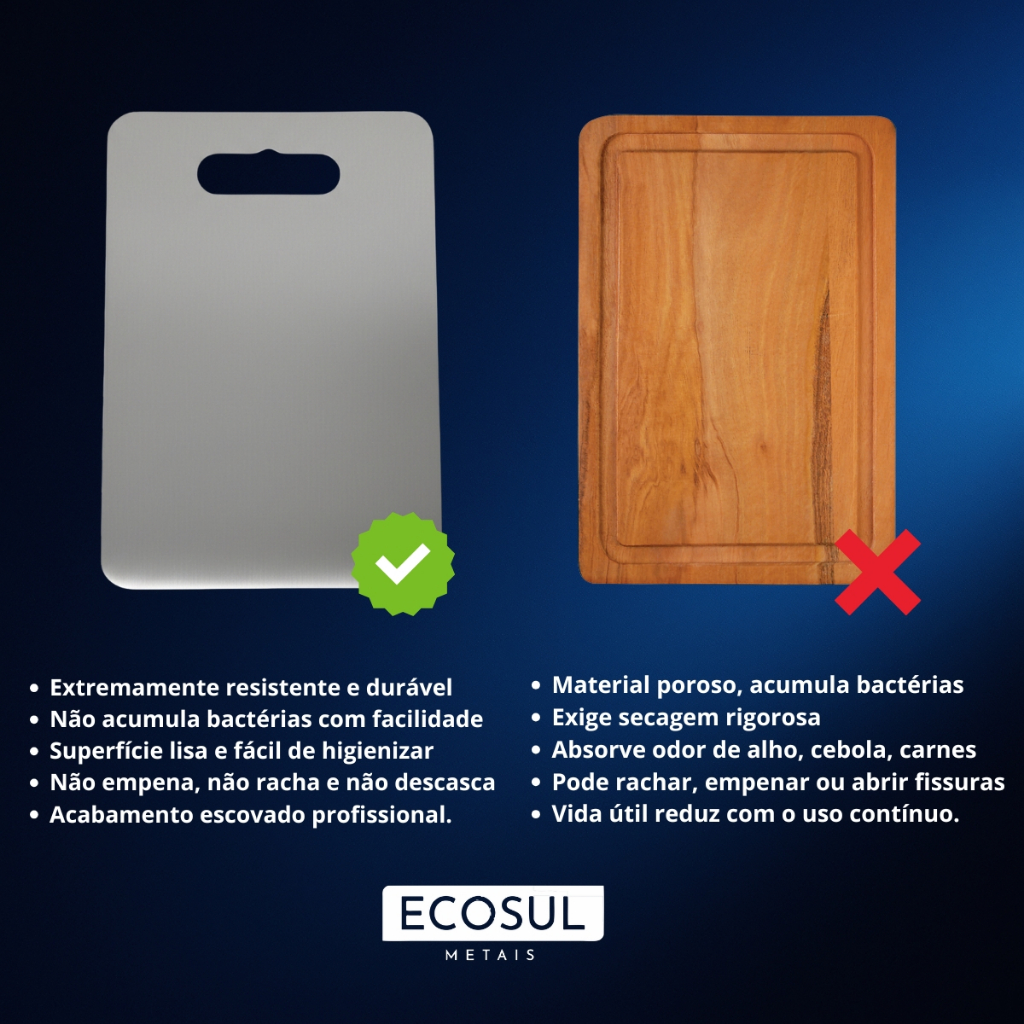 | Tábua De Corte Inox 304 Antibacteriana Ecosul Tamanho 40x28 este produto | R$ 39,90 | 27% | 4.8/5 | 127 |