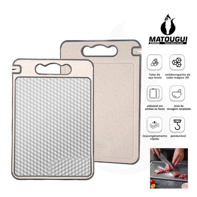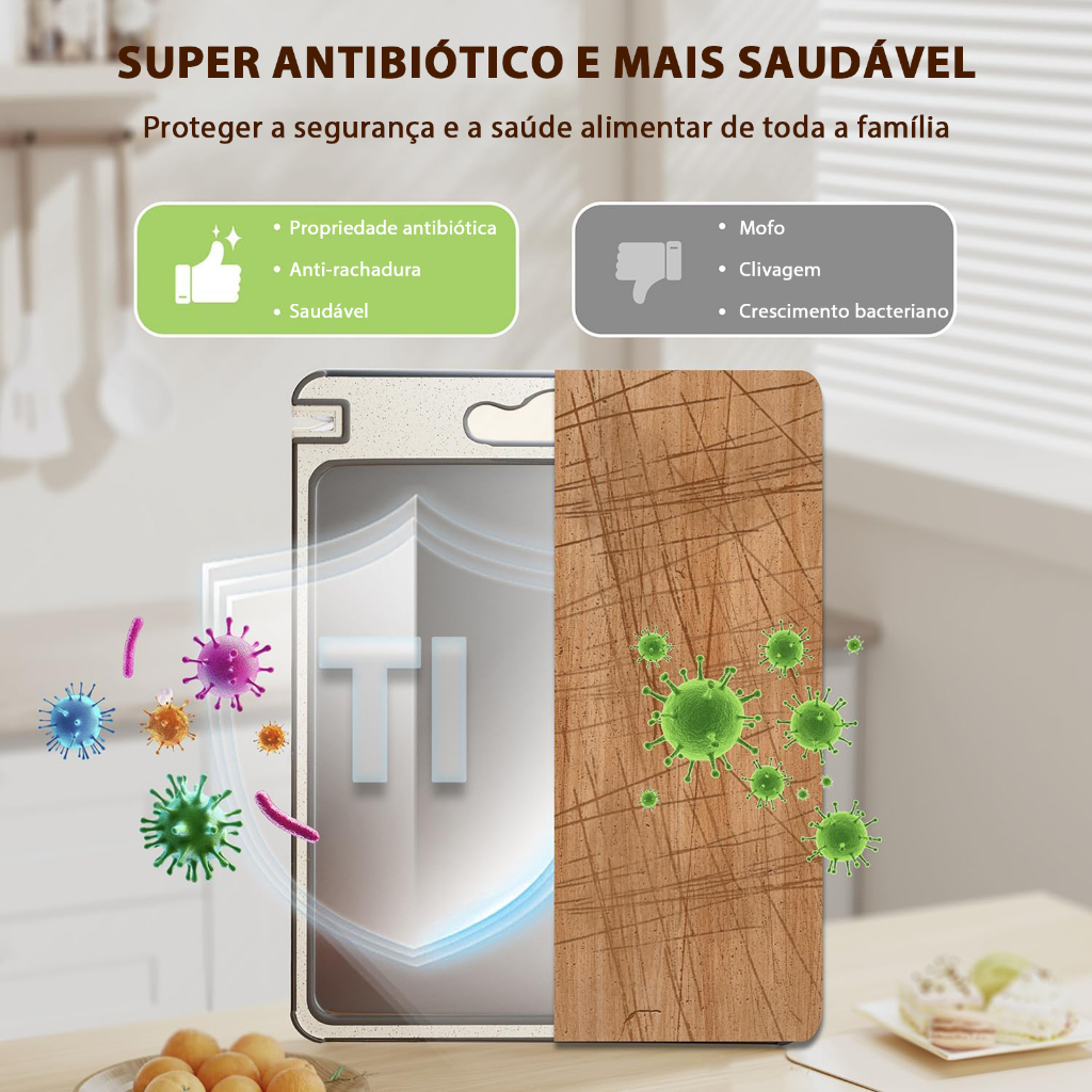 Tábua de Corte Profissional Dupla Face Aço Inoxidável Grau Alimentício Titânio Antiderrapante e Higiênica