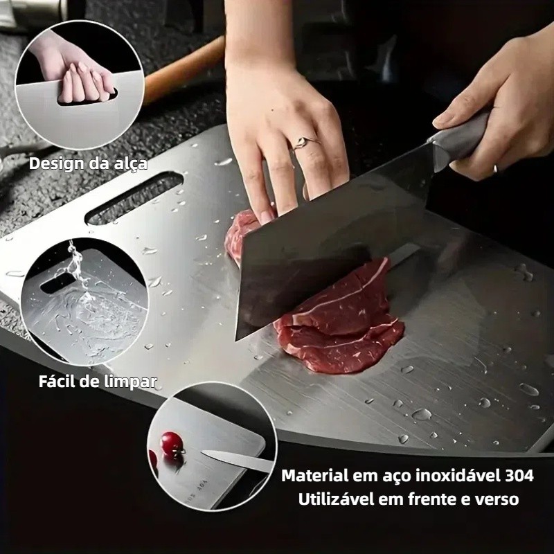 Tábua de Corte Profissional em Aço Inoxidável 304, Antimofo e Antibacteriano, Ferramenta de Cozinha