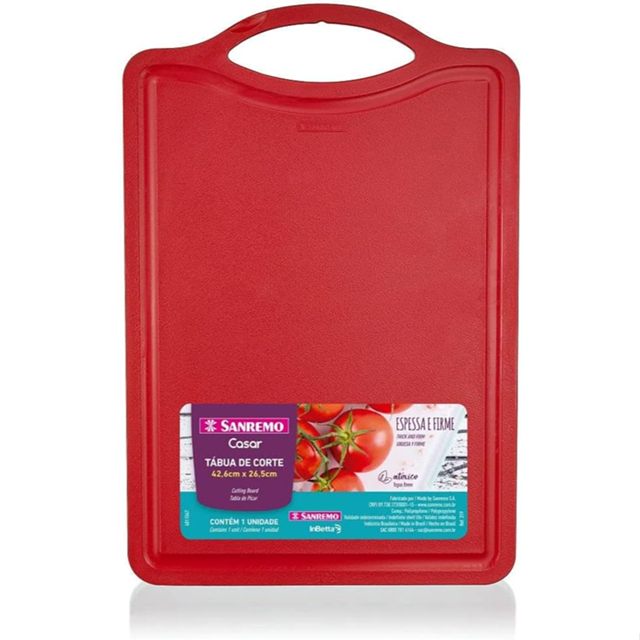 Tábua de corte com design moderno: alça que permite ser fixada em paredes - resistente, durável e higiênica. Aquela peça que não pode faltar na sua cozinha. • Ideal para o corte de carnes, saladas, legumes e temperos. • Fácil manuseio. • Pode ser pendurada. Material de alta qualidade e resistente. Tudo prático, tudo bonito, tudo Sanremo. Tamanho GG: 42,6 cm x 26,5 cm x 0,8 cm; Tamanho G: 36 cm x 24 cm x 0,7 cm; Tamanho P: 27cm x 18 cm x 0,5 cm;