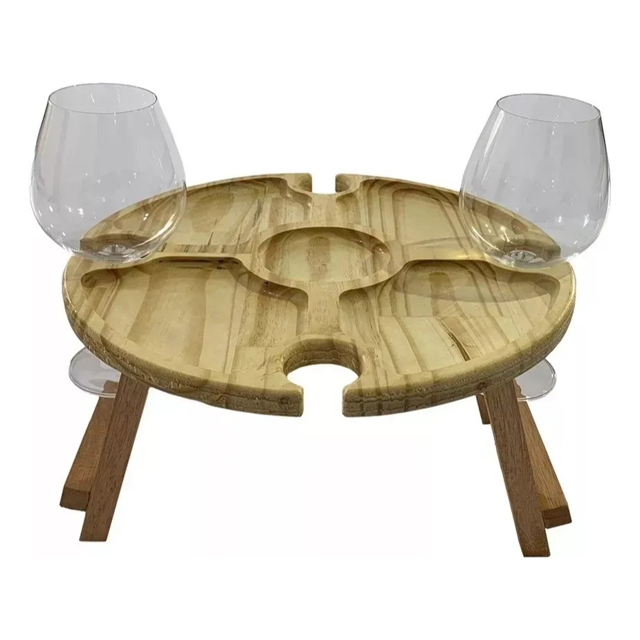 DESCRIÇÃO; O Porta Vinho Taças Com Petisqueira De Madeira Para Cama Sofá, prática e elegante para os amantes de vinho. Com cinco cavidades, ele permite que você armazene suas taças de vinho de forma segura e conveniente. Feito de madeira de alta qualidade, possui um belo acabamento que combina perfeitamente com qualquer decoração. Com dimensões de 29 cm de diâmetro, 17 cm de altura, 29 cm de comprimento e 29 cm de largura, este porta vinho é compacto e fácil de transportar. Ideal para desfrutar de um bom vinho enquanto relaxa na cama ou no sofá. A embalagem contém uma unidade do produto.