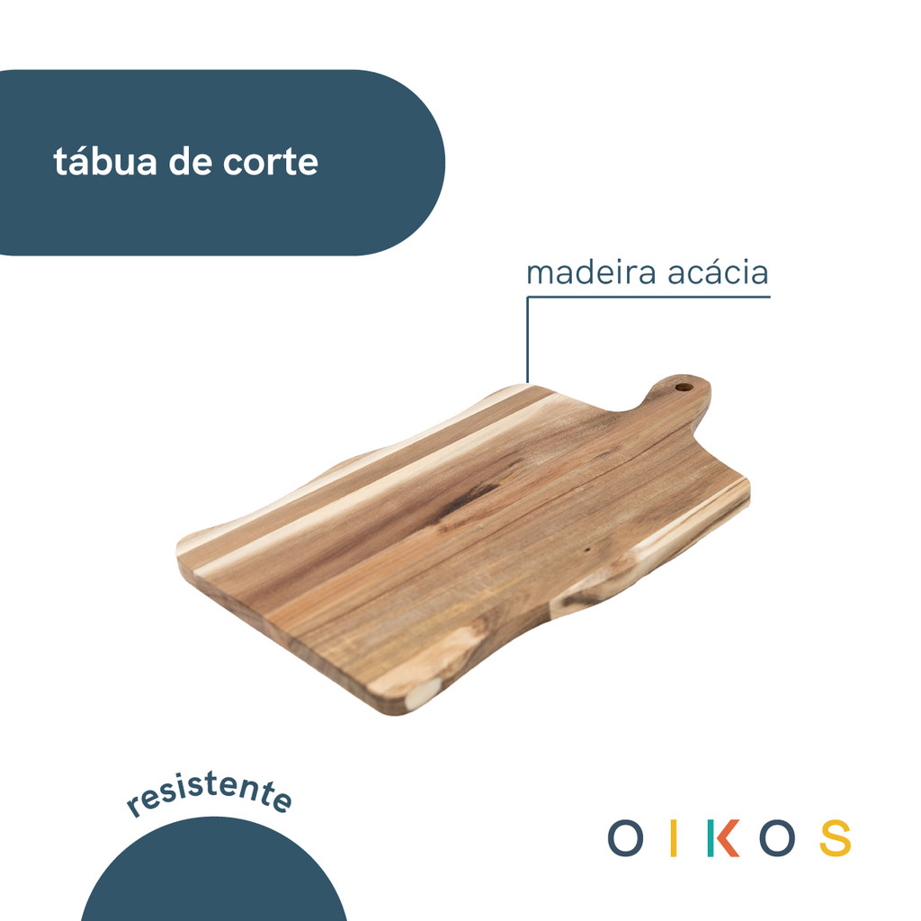 tábua de madeira acácia 43cm de corte rústica - Oikos