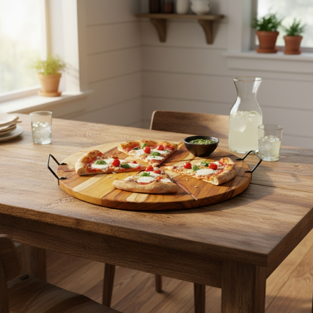 Tabua de Madeira para Servir Pizza Alça e Divisorias Resistente