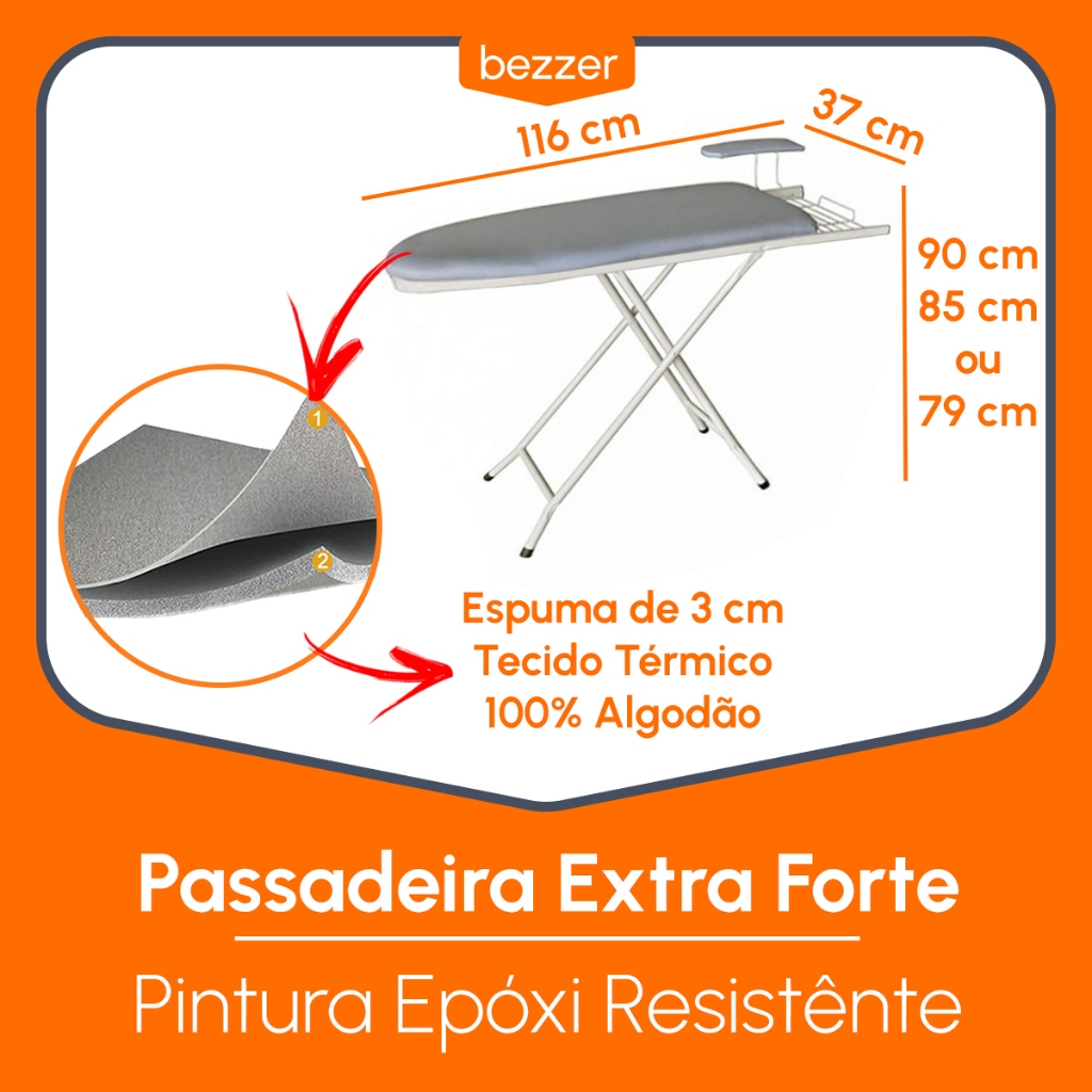 Tábua de Passar Roupa Mesa Multiuso Extra forte com Passa Manga Porta Ferro Base Fixa ou Dobrável