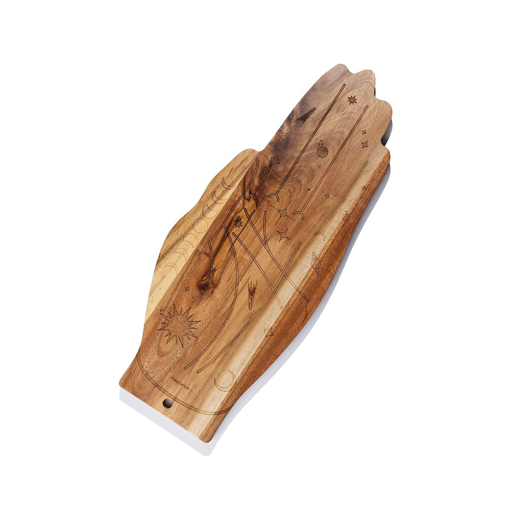 Para viver uma rotina repleta de boas energias, não há nada melhor do que agregar bem-estar à sua vida utilizando produtos naturais! Que tal começar por um utensílio que é perfeito para dividir com visitas e criar momentos especiais com quem se ama? Pensando nisso, desenvolvemos essa tábua de queijos com um lindo design místico para te acompanhar em novas memórias e, de quebra, trazer uma mágica decoração para sua cozinha. E olhe só: Esse produto é feito com uma madeira 100% natural de acácia, o que significa que pode haver variações de cor. Ou seja, o produto que você adquirir será completamente único, visto que nenhum é totalmente igual ao outro, possuindo aspectos únicos e referentes à madeira natural. Contém 1 tábua de queijos Tamanho (LxAxP): 42 cm x 1,5 cm x 16 cm Material: Madeira natural de acácia