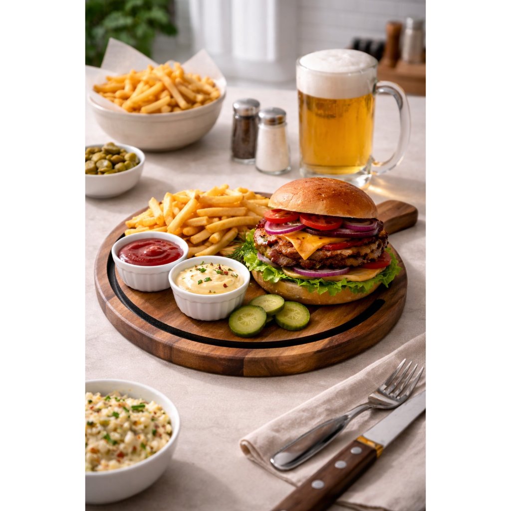 A Espírito Teca é aquela tábua redonda que combina beleza, funcionalidade e estilo. Com seu formato arredondado, cabo com furo e canaleta funcional, ela é perfeita para servir petiscos, carnes, hambúrgueres, porções individuais, queijos, doces e apresentações gourmet. Produzida em madeira teca premium, uma das mais resistentes e higiênicas do mercado, ela traz acabamento impecável e veios naturais lindos — cada peça é única, cheia de personalidade e com toque artesanal. Ideal para quem ama uma mesa bem montada, fotos bonitas ou aquele charme a mais no churrasco. ⭐ Características do Produto Material: Madeira Teca Premium Medidas: 30x20 cm Modelo: Redonda com cabo Canaleta para líquidos Acabamento resistente à água Superfície lisa e durável Veios naturais marcantes Corte CNC preciso Design elegante e atemporal 💡 Ideal para: Petiscos e porções Hambúrgueres e carnes Mini tábuas de frios Sobremesas e cafés Churrasco Apresentações gourmet Restaurantes, cafés e hamburguerias Presentes especiais 🎁 Por que a Espírito Teca conquista tanto? Formato redondo extremamente versátil Canaleta funcional Madeira teca = resistência + beleza Perfeita para fotos e mesas bem apresentadas Toque rústico e elegante ao mesmo tempo Veios naturais que tornam cada peça única 📦 Você recebe: 01 Tábua Espírito Teca – 30x20 cm ⚠️ Cuidados: Não deixar de molho Lavar com sabão neutro Secar logo após a lavagem Reaplicar óleo mineral periodicamente Evitar calor extremo e fogo direto 🚚 Envio rápido + embalagem protegida Sua tábua chega segura, linda e pronta para encantar!