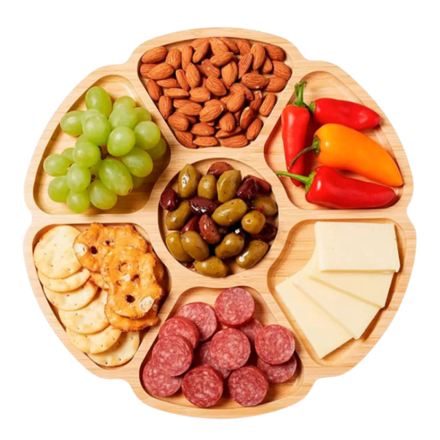 Tábua para Petisco Tipo Bambu MDF FLOWER 29cm Petisqueira com 7 Divisórias para Frios Churrasco Amendoim Multiuso
