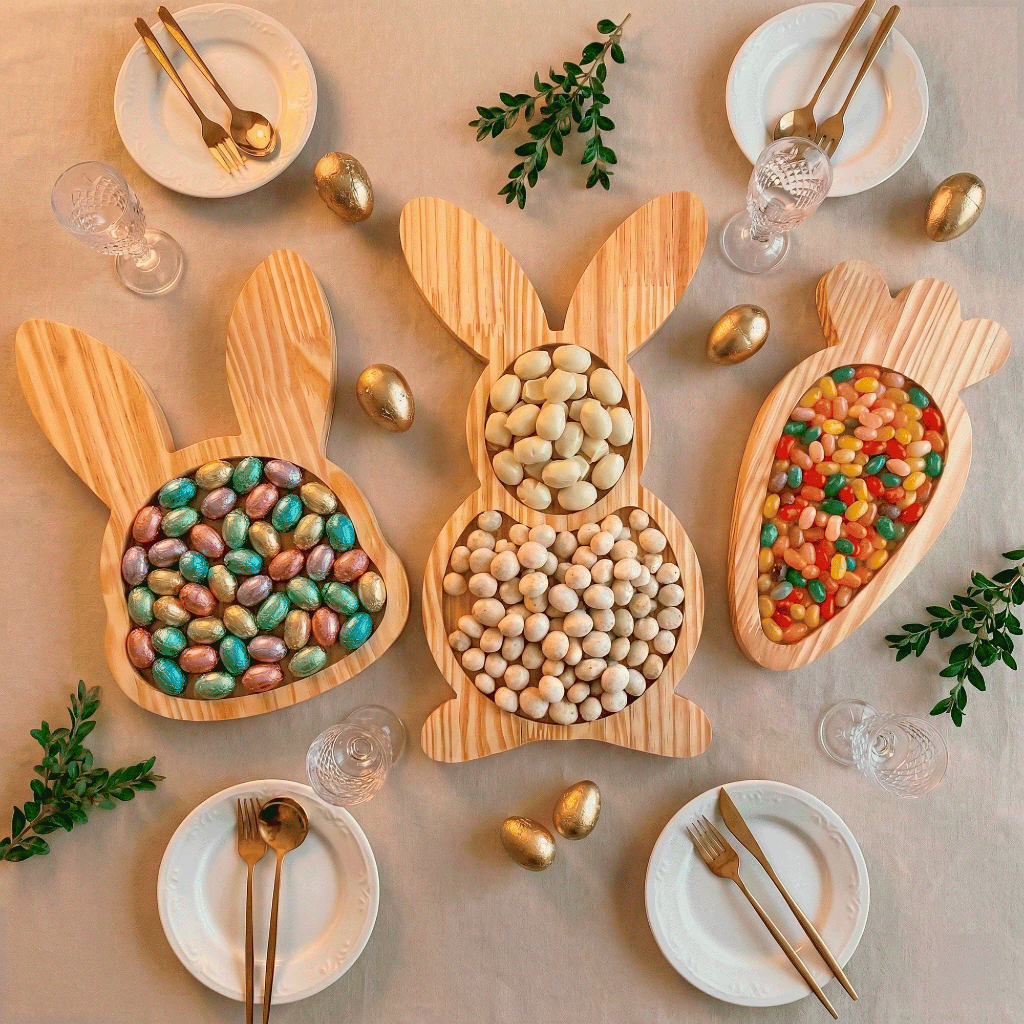 Tábua Petisqueira Páscoa Coelho Madeira Pinus Decoração Mesa Posta Servir Doces Petiscos Rústico