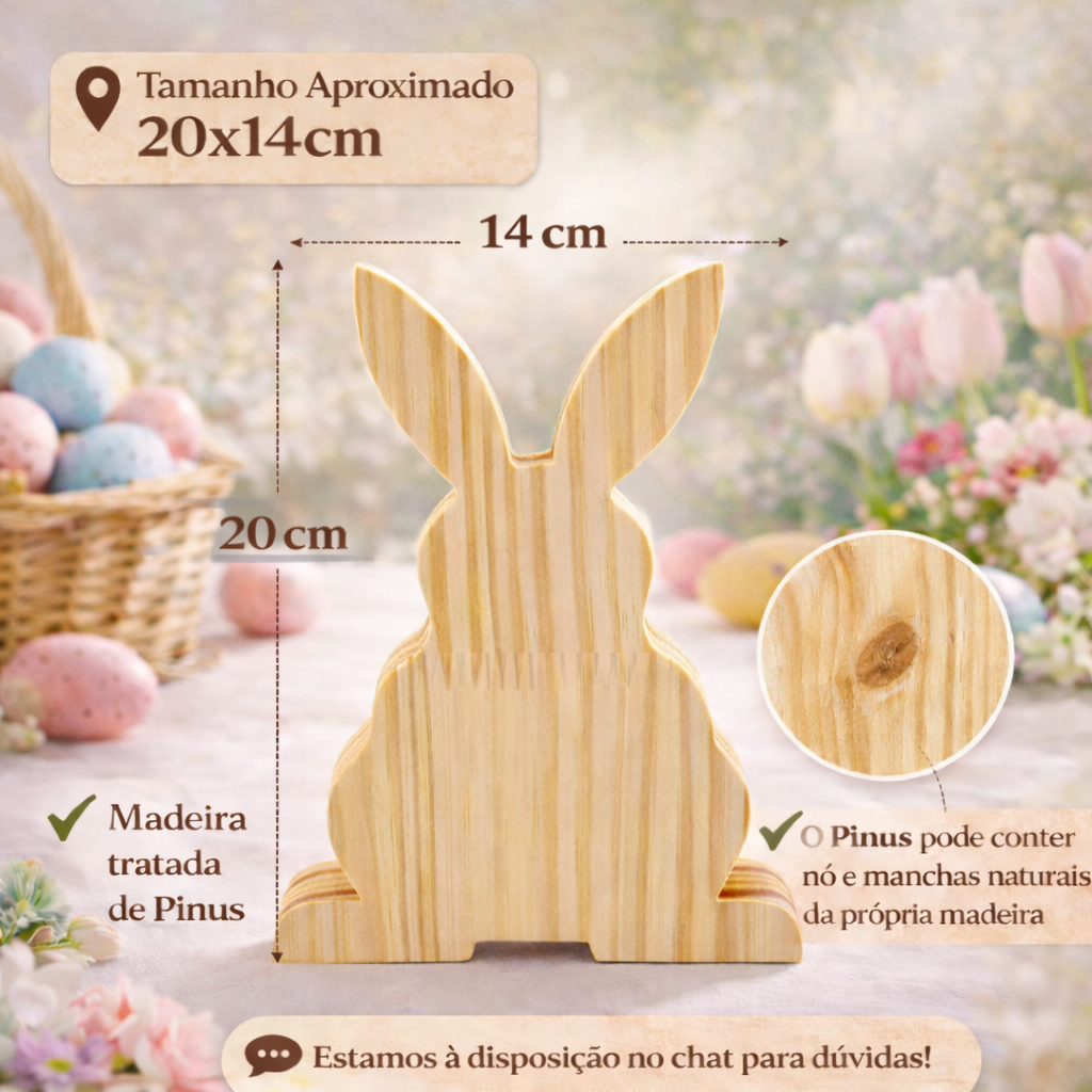 🐰 Tábua Coelho Páscoa em Pinus Mesa Posta para Frios e Petiscos 20x14 🐣 Descrição do Produto Deixe sua mesa ainda mais charmosa e temática nesta Páscoa 🐇 A Tábua Coelho em Pinus é ideal para servir frios, petiscos e pães, além de compor a decoração da mesa posta com um toque rústico e acolhedor 🌸 ✨ Destaques ✔️ Formato de coelho, perfeito para decoração de Páscoa ✔️ Pode ser usada como tábua de apoio para frios e petiscos ✔️ Visual natural que combina com mesas rústicas e temáticas ✔️ Produção artesanal com acabamento cuidadoso 📏 Medidas Aproximadas 20 cm de altura 14 cm de largura 🌲 Material Madeira de Pinus tratada Produto natural, podendo conter nós e manchas características da própria madeira, o que torna cada peça única 🎁 Ideal para mesa posta, decoração de Páscoa, presentes e composições especiais 💬 Estamos à disposição no chat para esclarecer qualquer dúvida!