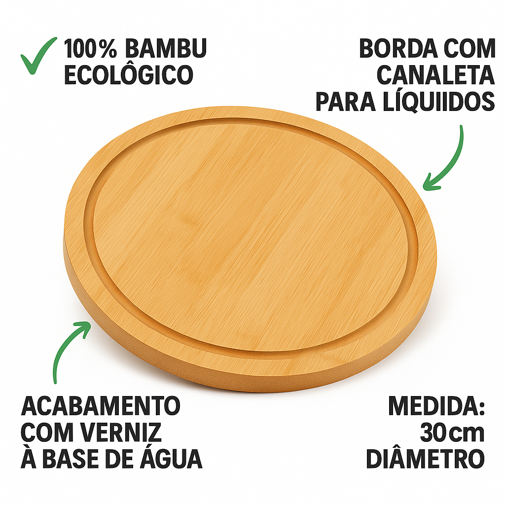 Tábua Redonda de Bambu Para Corte Multiuso Churrasco Carnes Legumes