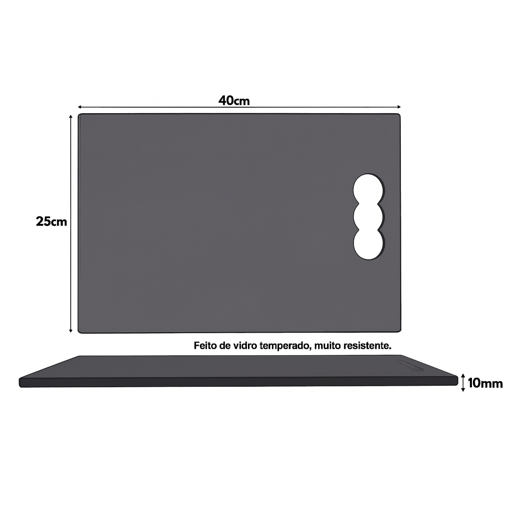Tábua Vidro Temperado 40x25cm ou 35x25cm 10mm Alta Resistência Cozinha Corte