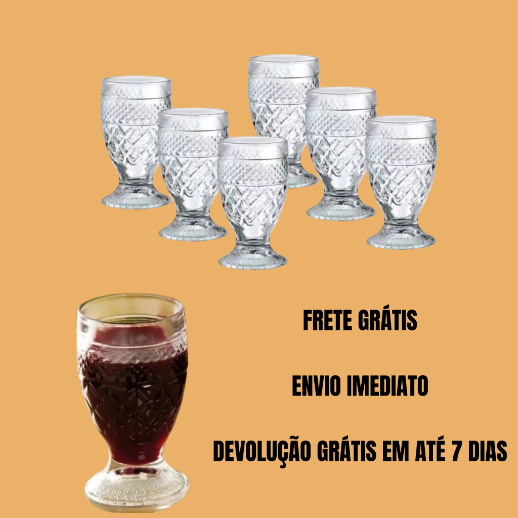 Taça Barroco Vidro Taça de Vidro Taça de Vinho Kit 6 Taças de Vidro