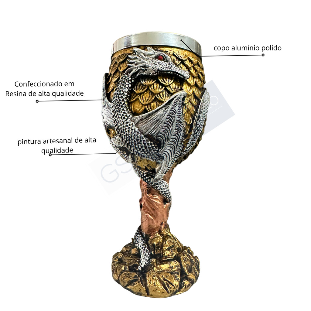 Taça Cálice Vicking Dragão Medieval Nórdico Resina 150 ML