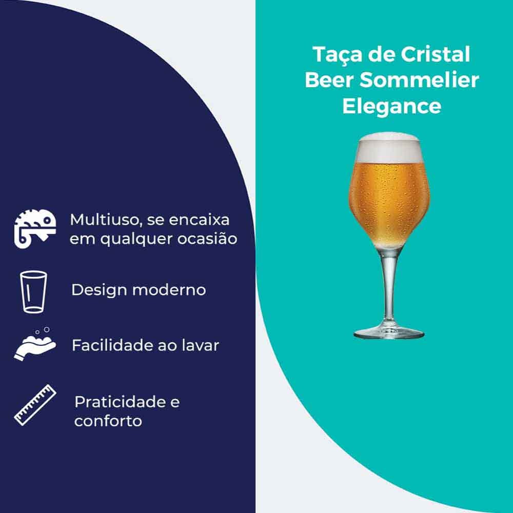 A clássica Taça de Cristal Beer Sommelier Elegance para cerveja 615ml é a escolha ideal para os verdadeiros apreciadores de cerveja que buscam sofisticação e excelência na hora de degustar. Feita em cristal de alta qualidade, esta Taça de Cristal foi projetada para realçar o sabor e o aroma da cerveja, proporcionando uma experiência única e refinada. Sua capacidade de 615ml permite que a cerveja seja servida na quantidade ideal, preservando suas características e criando uma apresentação impecável. Com um design elegante e contemporâneo, a Taça de Cristal Beer Sommelier Elegance combina funcionalidade e beleza, sendo perfeita para ocasiões especiais ou para adicionar um toque de classe aos momentos descontraídos. Seu formato exclusivo foi desenvolvido para intensificar a liberação dos aromas e melhorar a degustação de cervejas mais complexas. Material: Cristal. Dica de uso e preservação: • Recomendamos que a limpeza da peça seja feita a mão para evitar quebras ou danos. • Limpe a sujeira utilizando uma esponja macia, tire o resíduo de sabão e seque bem. • Não utilize abrasivos ou utensílios pontiagudos. • Evite impactos e não exponha o vidro a mudanças bruscas de temperatura pois poderá causar choque térmico e danificar seu produto. • Para realçar ainda mais o brilho das peças, limpe-as com uma flanela que não solte fiapos, levemente umedecida com álcool.