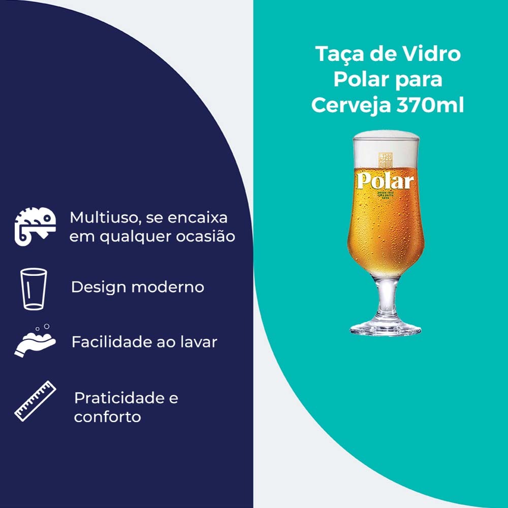 A Taça de Vidro Polar para Cerveja 370ml é perfeita para apreciar sua cerveja com estilo e sofisticação. Projetada para realçar os aromas e sabores da bebida, essa taça de vidro oferece uma experiência de degustação mais confortável e prazerosa. Com capacidade de 370ml, seu design clássico proporciona o equilíbrio ideal entre volume e elegância, permitindo admirar a cor e a espuma da cerveja. Resistente e elegante, essa Taça de Cerveja é a escolha certa para qualquer momento especial, seja em encontros com amigos ou ocasiões comemorativas. Uso: Cerveja. Material: Vidro. Capacidade: 370ml. Diâmetro: 76mm. Altura: 190mm. Conteúdo da Embalagem: 1 Peça. - Peça medida com o volume máximo até a boca - Diâmetro é medido pela largura maior da peça. - Pode sofrer variação de até 10% de seu volume. Dica de uso e preservação: • Recomendamos que a limpeza da peça seja feita a mão para evitar quebras ou danos. • Limpe a sujeira utilizando uma esponja macia, tire o resíduo de sabão e seque bem. • Não utilize abrasivos ou utensílios pontiagudos. • Evite impactos e não exponha o vidro a mudanças bruscas de temperatura pois poderá causar choque térmico e danificar seu produto. • Para realçar ainda mais o brilho da peça, limpe-a com uma flanela que não solte fiapos, levemente umedecida com álcool.