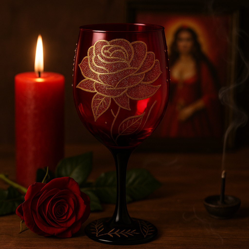 Taça Pomba Gira Preta e Rosa Vermelha Barone Cristal 490ml