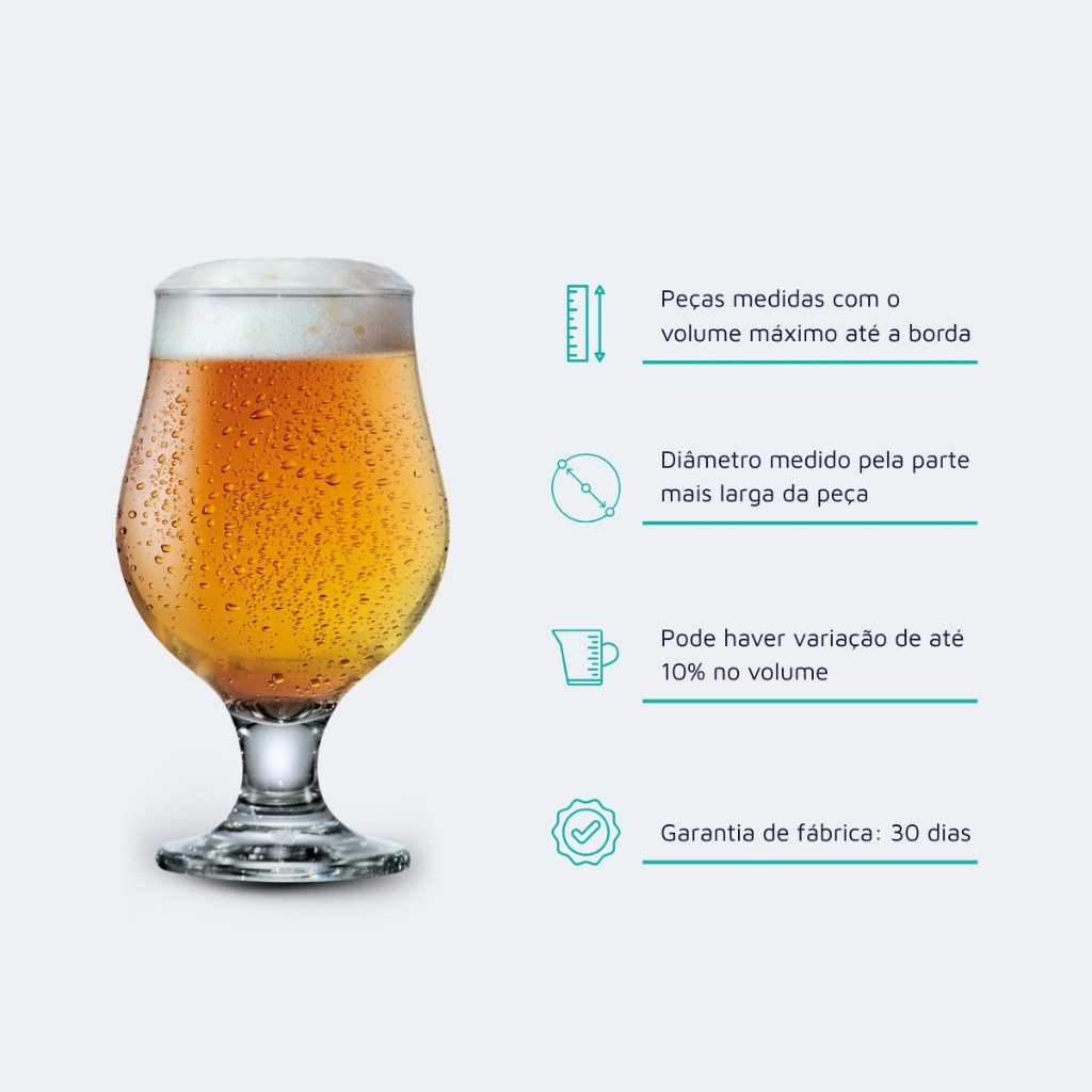 Taça Vidro Beer Master Cerveja Chopp Bar Restaurante Jantar 6 Peças 380ml Ruvolo Utilizar copos inadequados compromete a liberação de aromas, a formação da espuma e a experiência de degustação da cerveja. A Taça de Vidro Beer Master Ruvolo foi desenvolvida para resolver esse problema, oferecendo um formato específico que valoriza as características da bebida e melhora a percepção sensorial em cada uso. Benefícios Principais Fabricada em vidro, a Taça Beer Master possui design pensado para favorecer a liberação dos aromas e a formação adequada da espuma. Sua capacidade de 380ml atende diferentes estilos de cerveja, permitindo uma degustação equilibrada. O acabamento transparente valoriza a cor da bebida, enquanto o formato garante conforto no manuseio e estabilidade durante o uso. Compatibilidade e Aplicação Indicada para consumo de cervejas em geral, como lagers, ales, stouts e ipas. Recomendada para uso doméstico, encontros com amigos, confraternizações, bares, áreas gourmet e momentos de degustação. Especificações Técnicas Material: Vidro Capacidade: 380ml Modelo/linha: Beer Master Formato: Taça Marca: Ruvolo Observações: Volume medido até a boca; pode sofrer variação de até 10% Itens Inclusos 04 Taças de Vidro Beer Master 380ml Escolha taças desenvolvidas para valorizar cada detalhe da sua cerveja, com funcionalidade, qualidade e prontas para uso em qualquer ocasião. Ruvolo A Ruvolo é uma empresa especializada na produção de copos, taças, canecas e outros produtos de utilidade doméstica em vidro e cristal, oferecendo itens funcionais, resistentes e com design pensado para o uso diário. Trabalha com produtos voltados para praticidade, organização e apresentação, atendendo tanto o uso doméstico quanto opções para presente, sempre com foco em qualidade e bom acabamento. Há mais de 100 anos no mercado, a Ruvolo traz excelência e qualidade para a sua mesa. Pensou em vidro, pensou em Ruvolo.