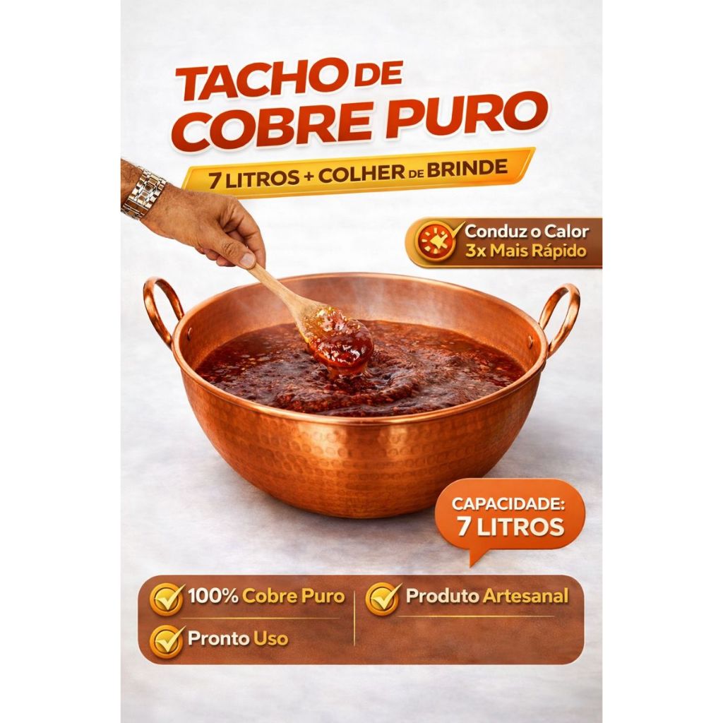 | Tacho De Cobre Puro 7 Litros Alça de cobre+Colher de Madeira (Brinde) este produto | R$ 271,90 | — | 4.9/5 | 27 |