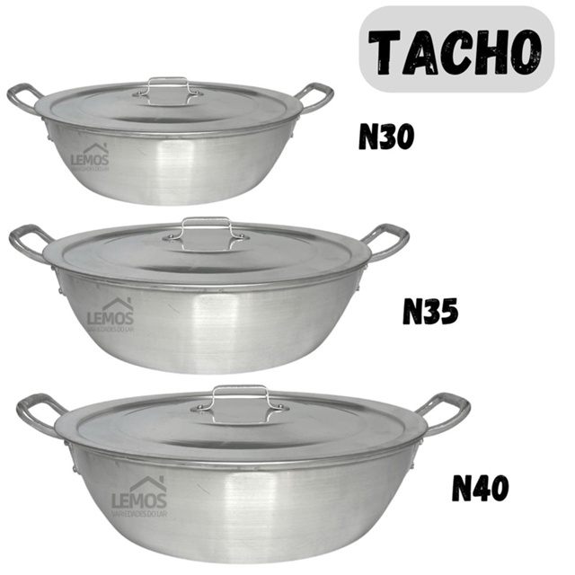Tacho Medio Grande 5L 8L ou 12L Com Tampa N30 - N35 - N40 Fritar Batata Pastel Salgado Camarão Moqueca Em Alumínio