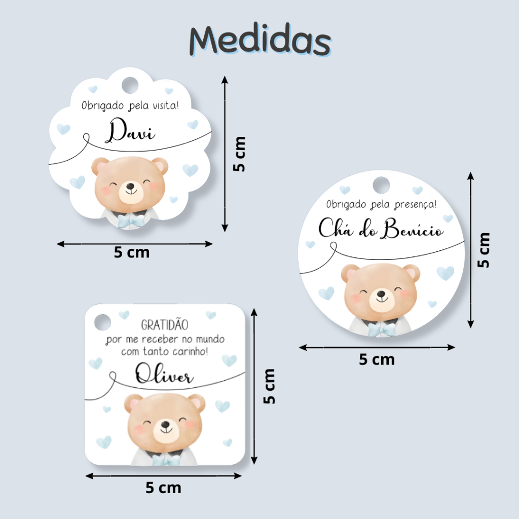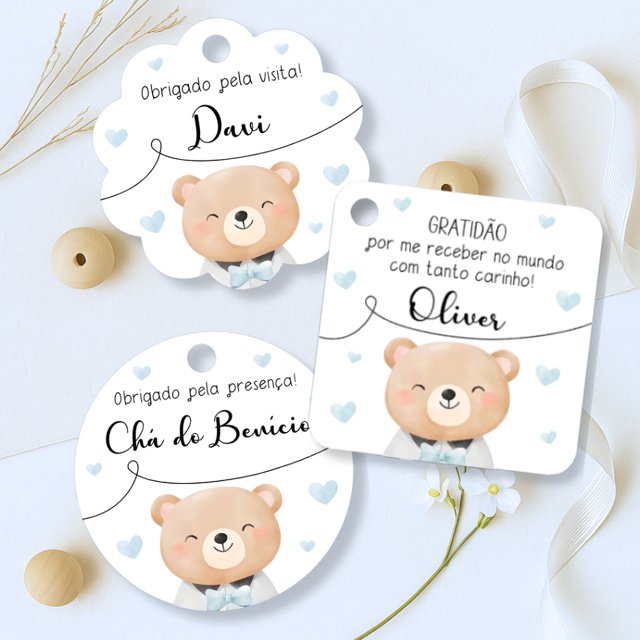 ✨ Tag de Agradecimento Ursinho Azul Claro Personalizado com Nome ✨ 💙Chegou o mimo perfeito para acompanhar as lembrancinhas desse momento tão especial! Encante seus convidados e deixe sua lembrança ainda mais encantadora e personalizada com amor e sofisticação. Nossa tag personalizada com o tema Ursinho é ideal para maternidade, primeira visita ao recém-nascido, chá de bebê ou aniversário. Com arte delicada e nome do bebê incluído, você pode escolher o formato que mais combina com a sua lembrancinha: redondo, escalope ou quadrado, dando um toque de charme e com aquele detalhe que faz toda a diferença!💕 ✨ Destaques do produto: - Personalizado com nome; - Material: Papel fotográfico matte (sem brilho); - Acabamento: Recorte eletrônico preciso; - Tamanho: 5x5 cm; - Formatos disponíveis: Redondo, Escalope ou Quadrado (escolha na variação); - Já vai com furo prontinha para uso (caso deseje sem o furo é só nos informar após a compra); 🧵 Produto artesanal feito com muito amor! Cada detalhe é criado com carinho para eternizar momentos únicos. Personalize com o nome do seu bebê e surpreenda quem você ama. ⚠️Observações: 💌Podemos substituir a frase da escrita por alguma do seu agrado, caso fique com no máximo 3 linhas (é só escolher a variação "Frase personalizada"). Nos envie via chat assim que finalizar a compra, caso não envie no prazo de 24h, será enviado com a frase do modelo Gratidão; 💕Nos envie o nome para personalização via chat ou mensagem após a compra, caso não nos envie em até 24h a tag será enviado sem o nome; ❌Não acompanha qualquer tipo de fita; 🎨Pequenas variações nas cores podem ocorrer conforme o tipo de tela/dispositivo usado para visualização do anúncio; ✨Para outras cores procure em nossos outros anúncios ou peça via chat que enviamos o link; 📦 Envio rápido. Fique atento(a) apenas ao prazo informado pelas transportadoras no momento da compra. 💬 Ficou com alguma dúvida? Mande uma mensagem no chat! Será um prazer te ajudar a deixar sua festa ainda mais linda e cheia de personalidade!