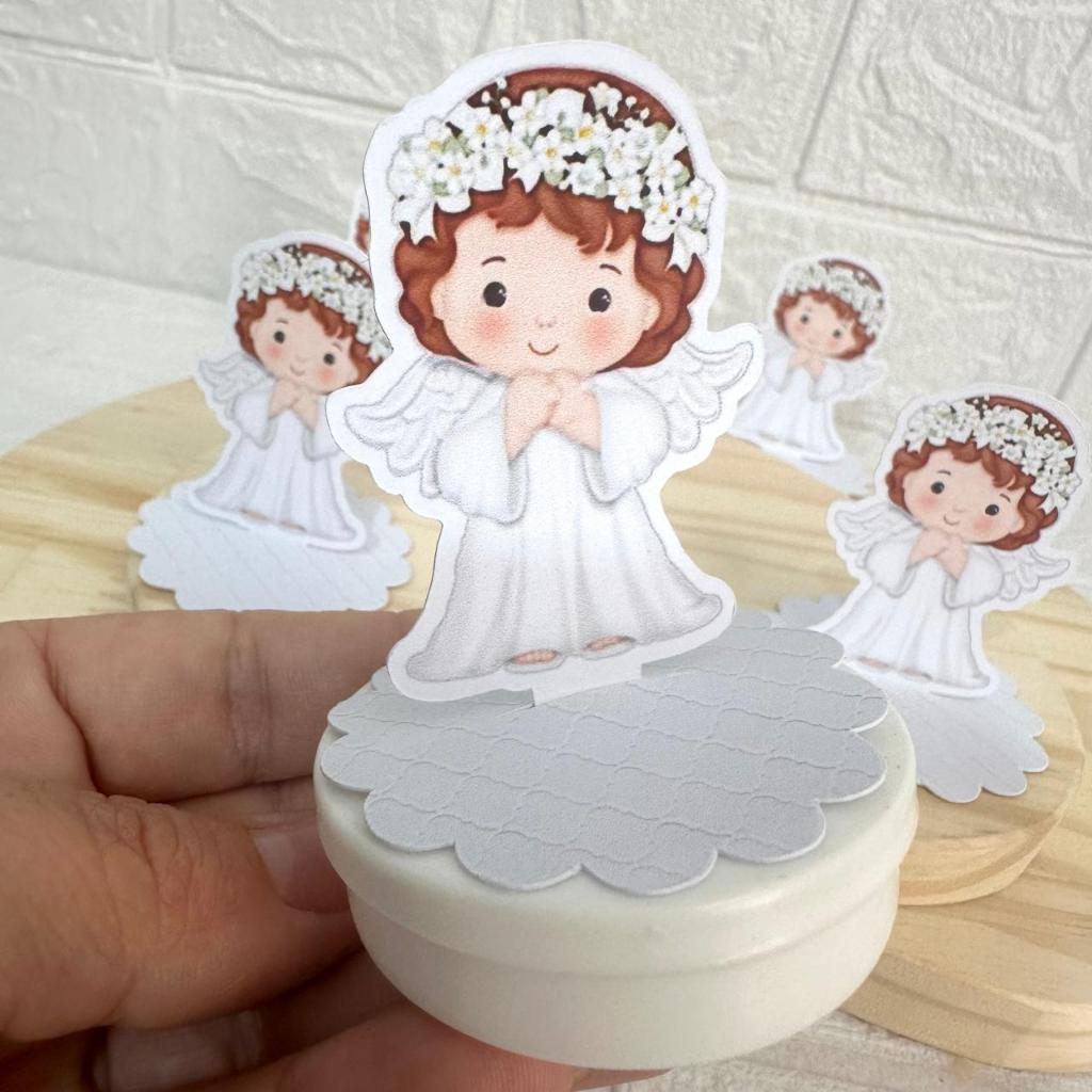 Tag Aplique em Pé – Tema Anjinho Branco Batizado
