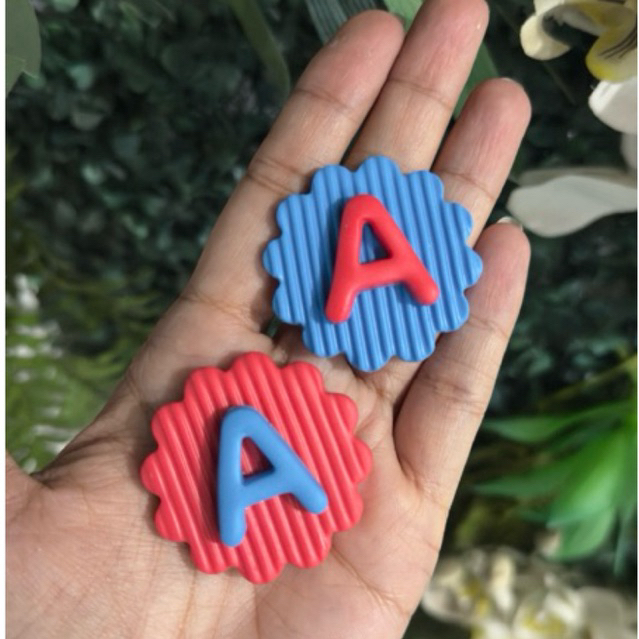 Tag de aproximadamente 3,8 cm feita em biscuit Escolha a cor da tag no anúncio e envie no chat a cor da letra .. Se não enviar a cor da letra , será enviado mesma cor da tag .. Nao fazemos pintura da letra no dourado ou prata .. Dúvidas sobre novar via chat