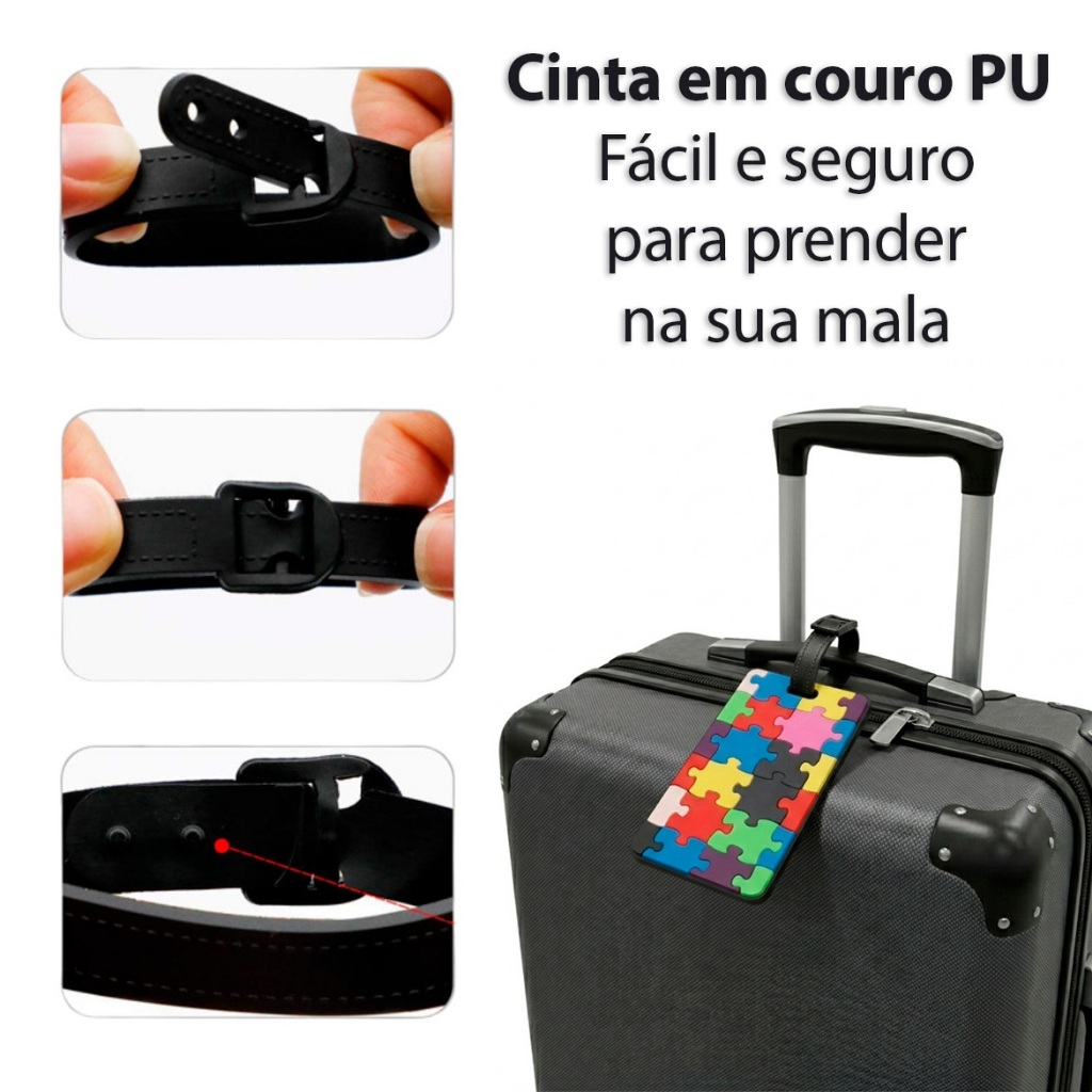 Tag Identificadora de Viagem Etiqueta Mala, Mochila e Bagagem Viajar com tranquilidade é essencial. Com as tags identificadoras, você evita transtornos e encontra sua mala com mais facilidade no aeroporto, rodoviária ou hotel. Elas possuem espaço para seus dados pessoais, ajudando na identificação em caso de extravio. Além de funcionais, essas tags também adicionam um toque de estilo à sua bagagem. Disponíveis em cores vibrantes e temas variados, são ideais tanto para adultos quanto para crianças. Uma solução prática e segura para manter sua bagagem sempre identificada. Características: – Facilita a identificação da bagagem – Pode ser usada em malas, mochilas e bolsas – Fabricada em PVC emborrachado, suporta longas viagens Tamanho aproximado: 10 x 7 cm Material: Policloreto de Vinila (PVC emborrachado, tipo silicone) -Informações na etiqueta traseira: Nome Endereço Telefone
